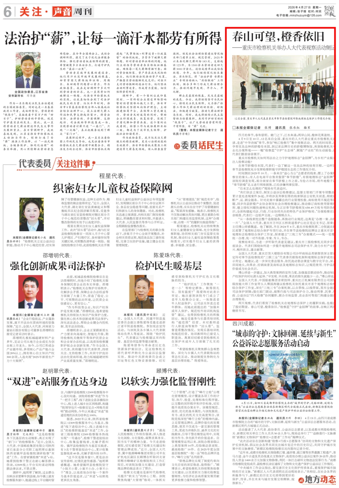 两天视察,代表们看到了检察机关在地理标志保护上的履职实践,也提出了殷切期望。春山可望,橙香依旧,“检察蓝”守护“金招牌”的故事,在峡江两岸继续书写。