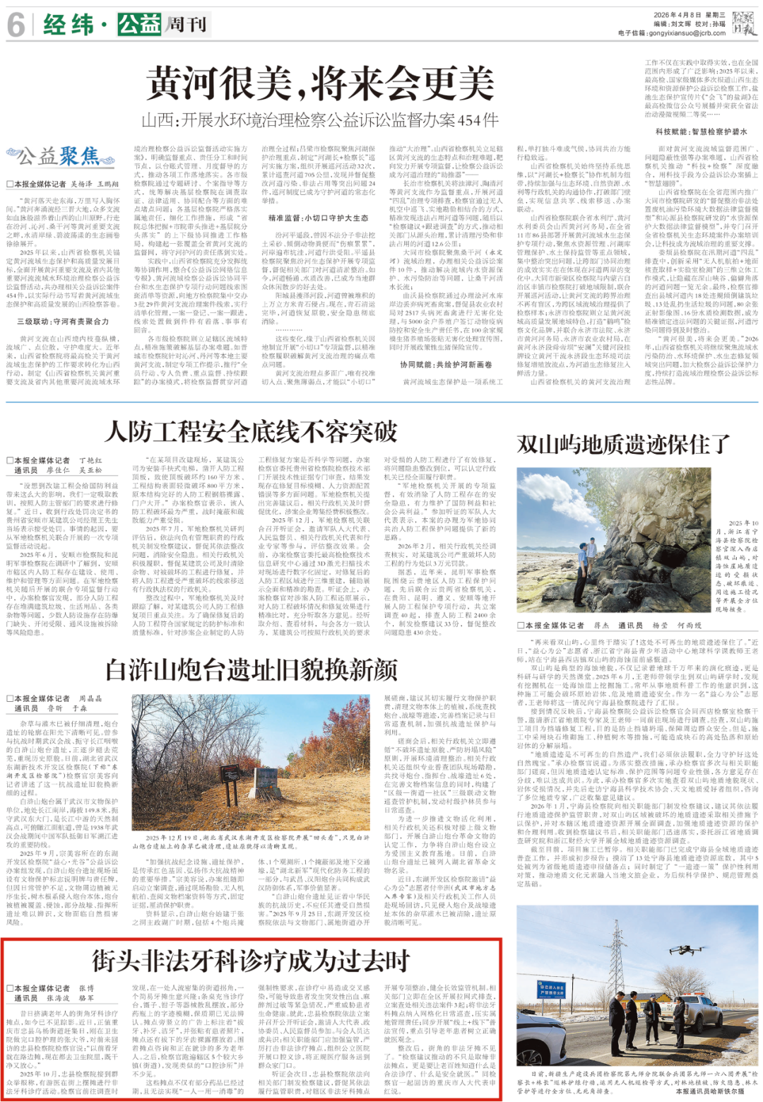2026年4月8日,《检察日报》第6版刊登《街头非法牙科诊疗成为过去时》一文,内容如下: