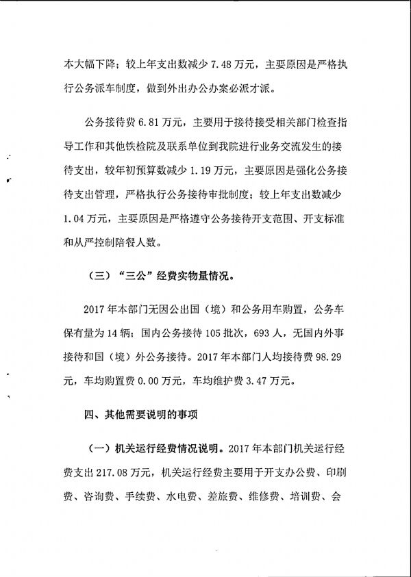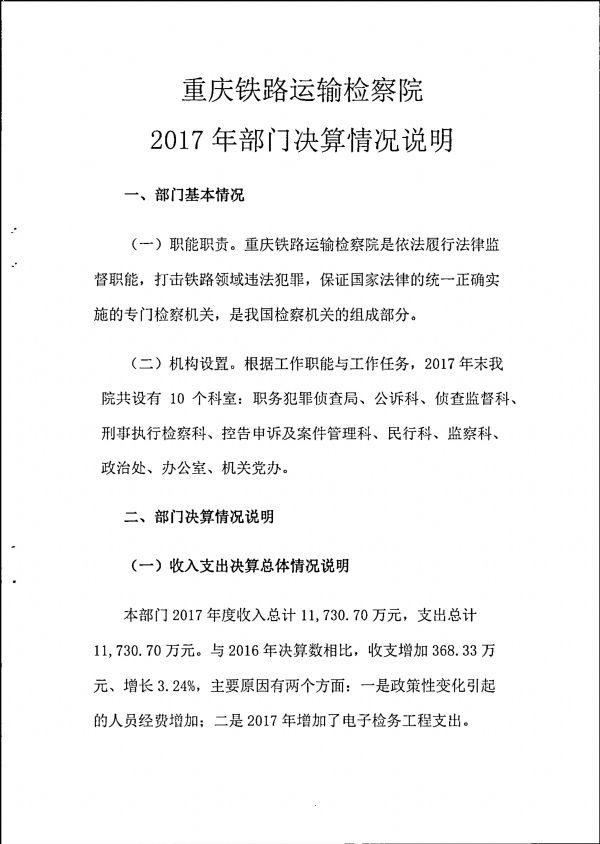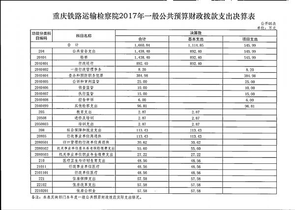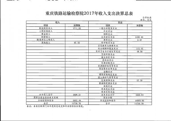 重庆铁路运输检察院2017年部门决算