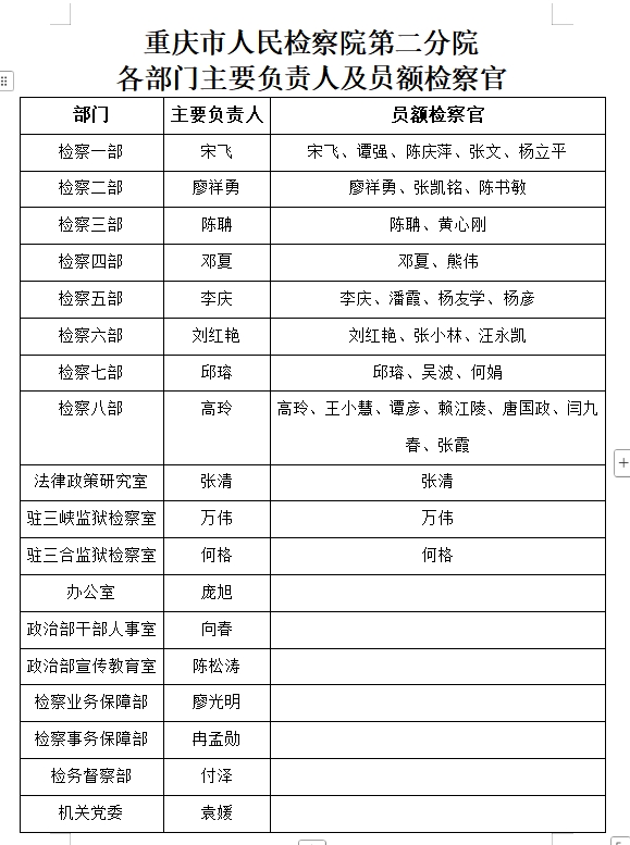 188体育(中国)官方网站 第二分院各部门主要负责人及员额检察官