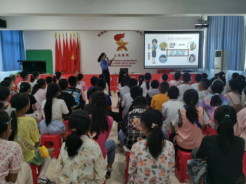 5月29日,城口县院联合团县委在青少年宫开展“携手落实‘两法’ 共护祖国未来”检察开放日活动,“莎姐”检察官以拒接校园欺凌为主题,为3-4年级学生讲授法治课。活动邀请部分县人大代表、政协委员、学生家长代表参加。