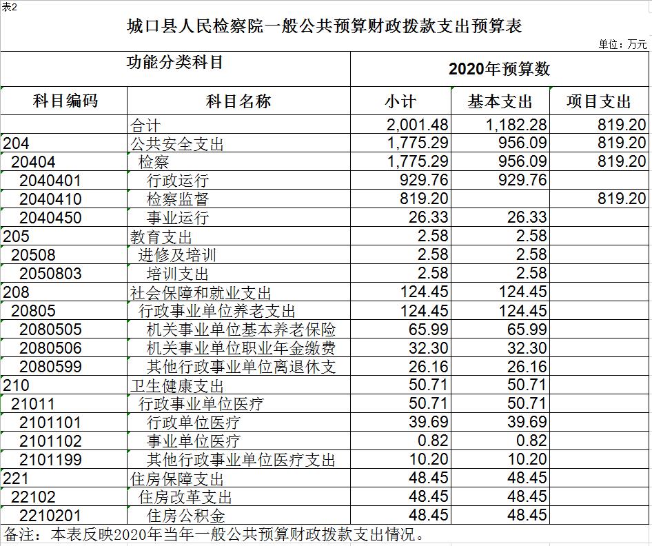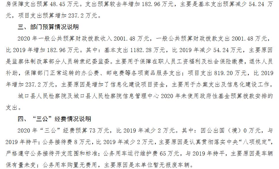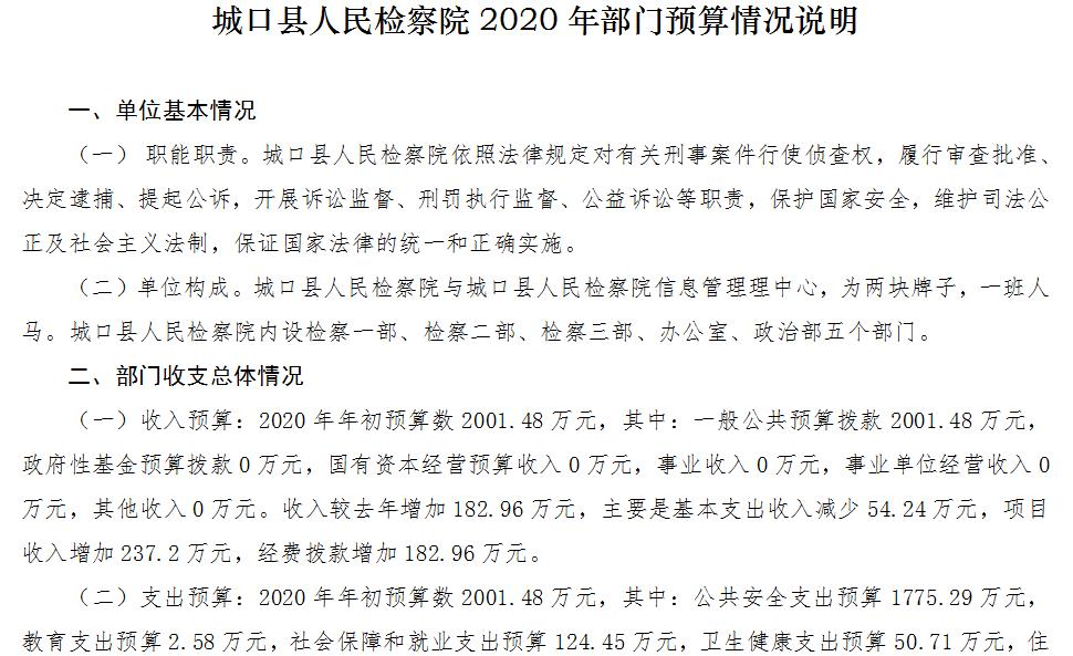 重庆市城口县人民检察院2020年部门预算情况说明