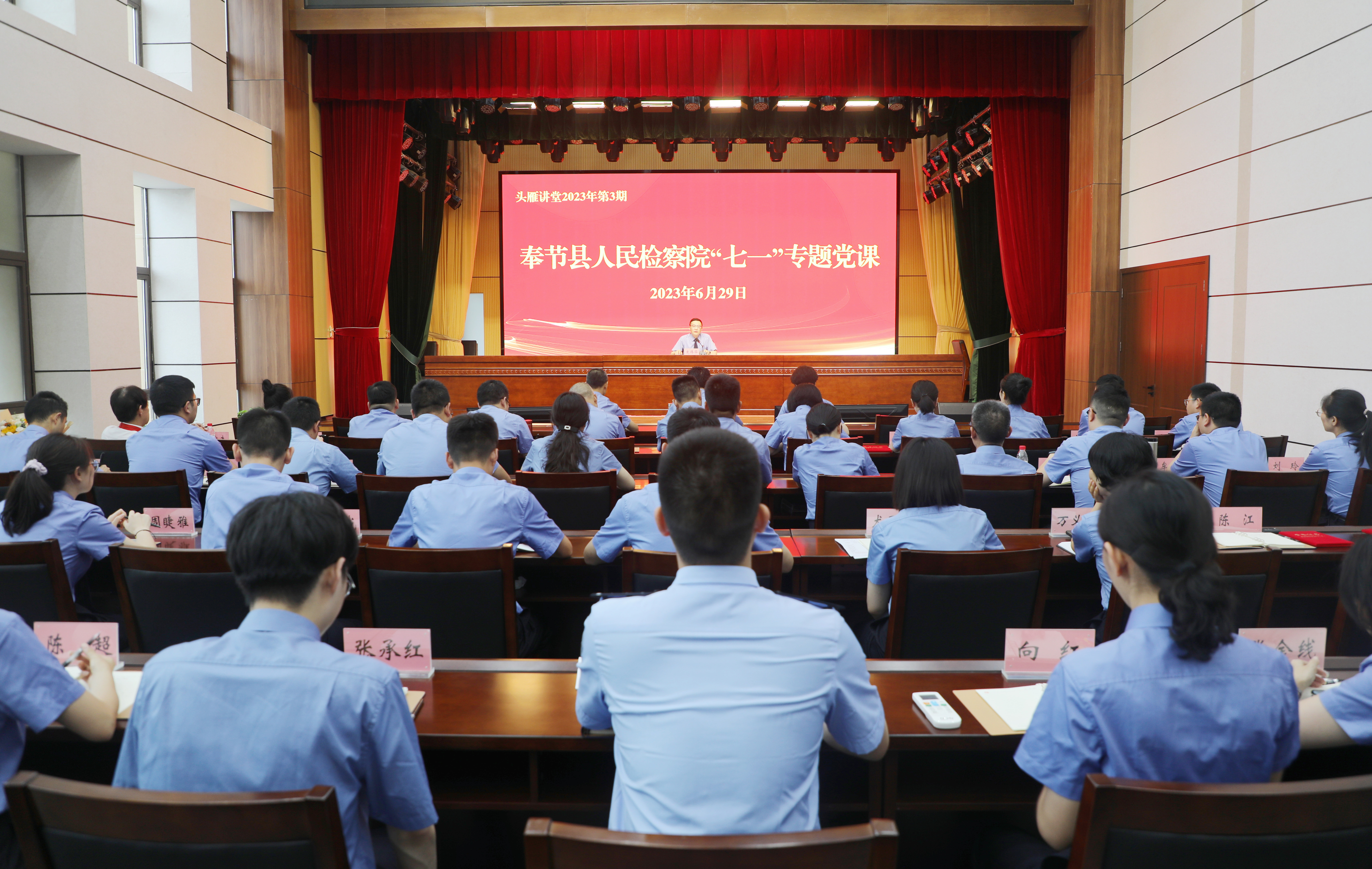 6月29日,奉节县检察院党组书记、检察长庞伟华以《牢牢把握高质量发展要求 推进奉节检察工作现代化》为题讲授专题党课。