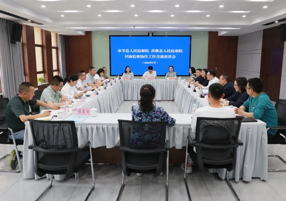 巴风蜀韵,川渝一家。为进一步加强川渝自然遗产和文化遗产检察保护,5月6日,奉节县检察院与四川省洪雅县检察院召开了川渝检察协作工作交流座谈会。县检察院党组书记、检察长庞伟华,洪雅县检察院党组书记、检察长林激光,两院相关院领导及部室负责人参加会议。