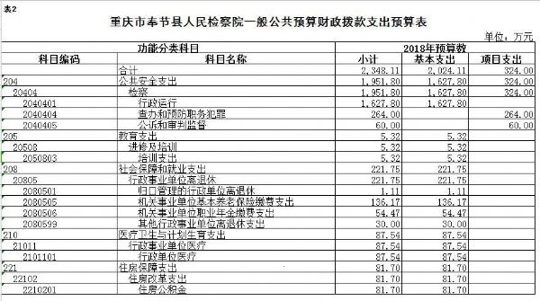 奉节县人民检察院2018年部门预算情况说明