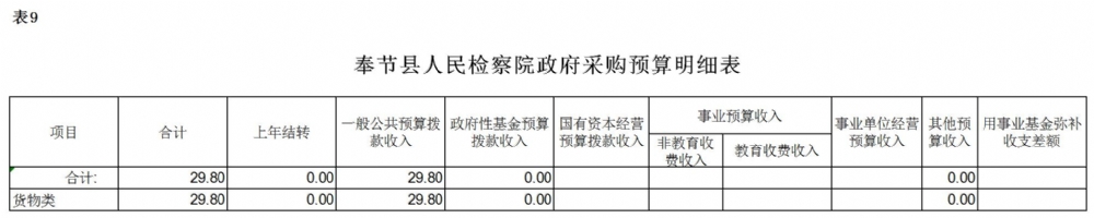 2、政府采购情况。本单位政府采购预算总额29.8万元:政府采购货物预算29.8万元、政府采购工程预算0万元、政府采购服务预算0万元;其中一般公共预算拨款政府采购29.8万元:政府采购货物预算29.8万元、政府采购工程预算0万元、政府采购服务预算0万元。