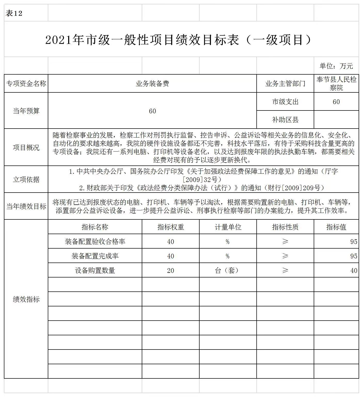 3、绩效目标设置情况。2021年项目支出均实行了绩效目标管理,涉及一般公共预算当年财政拨款1194万元。