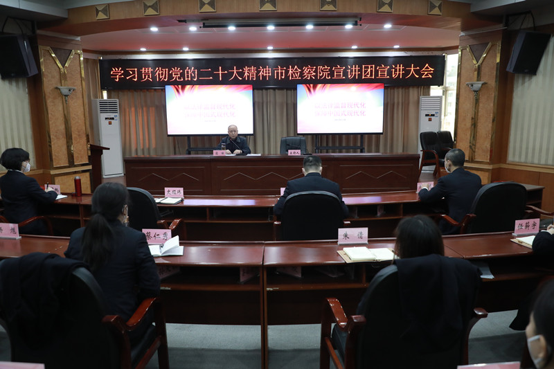 12月14日,我院召开学习贯彻党的二十大精神188体育 宣讲团宣讲大会,全市检察机关学习贯彻党的二十大精神宣讲团成员、188体育 党组成员、副检察长梁田莅临我院,专题宣讲党的二十大精神。我院党组书记、检察长庞伟华主持会议,全院干警参加本次学习。