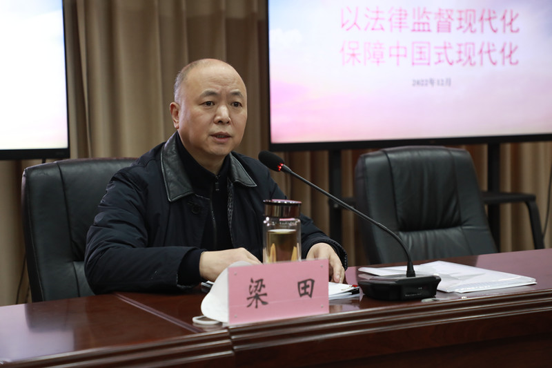 会上,梁检以《以法律监督现代化保障中国式现代化》为题,围绕全面准确把握党的二十大会议的主要成果和重大意义、全面准确把握党的二十大报告的主要内容和精神实质、全面准确把握党的二十大赋予检察机关的更重要的政治责任、全面准确把握党的二十大关于全面从严治党的部署要求等方面,深入细致地宣讲二十大精神,为全体干警带来一堂内容丰富的思政课。