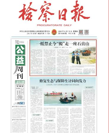 2024年6月13日,《检察日报》第5版刊登《一纸禁止令“搬”走一座石膏山》一文,内容如下: