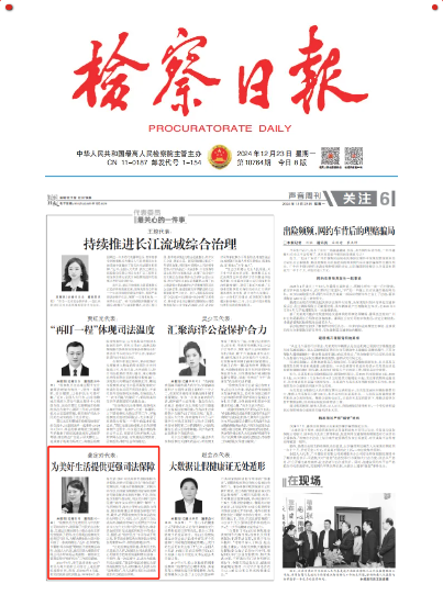 2024年12月23日,《检察日报》第6版刊登《龚定玲代表:为美好生活提供更强司法保障》一文,内容如下: