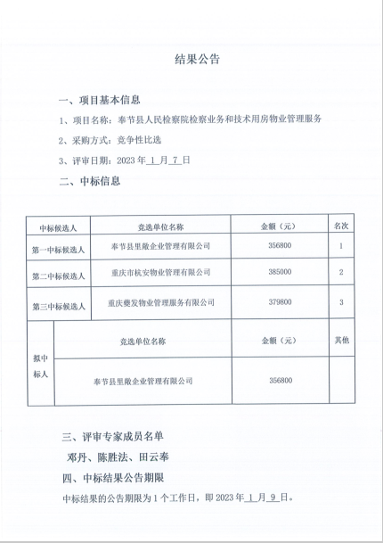 比选结果公告