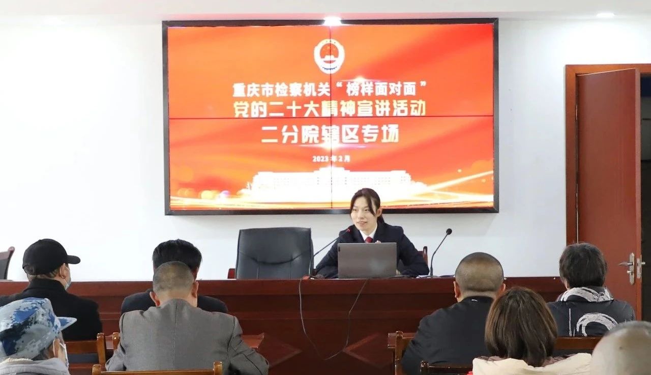 本次活动的宣讲人,是重庆市万州区检察院检察七部主任李宁,曾荣获“重庆市最美新时代政法英模”等荣誉。围绕“坚持全面依法治国,推进法治中国建设”这一切入点,以“党的二十大精神和我们的生活”为题,李宁对党的二十大主题和主要成果进行了深入浅出的宣讲。活动中还穿插了互动环节、交流讨论等,现场气氛热烈,掌声阵阵。