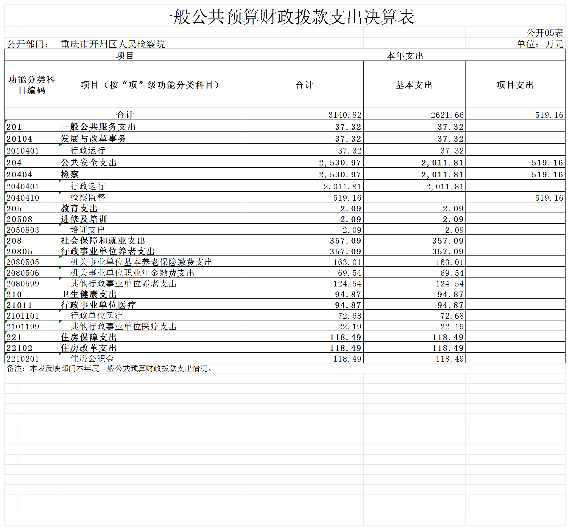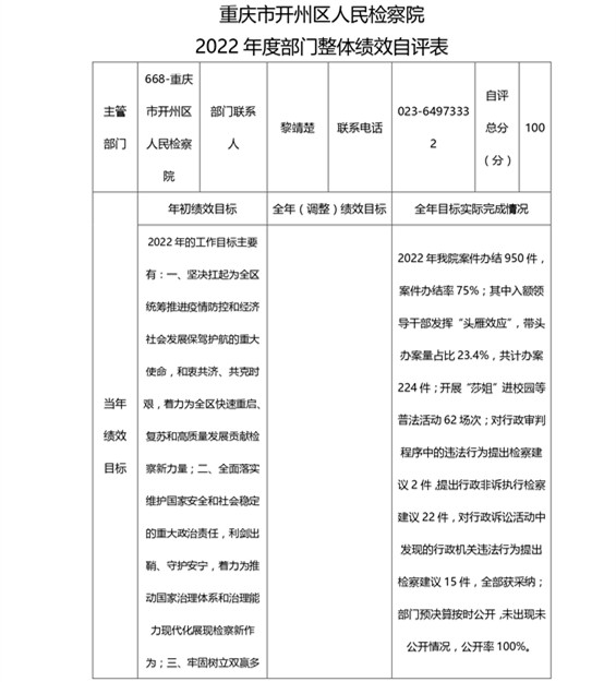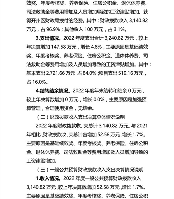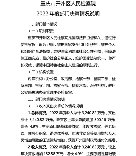 重庆市开州区人民检察院2022年度部门决算情况说明