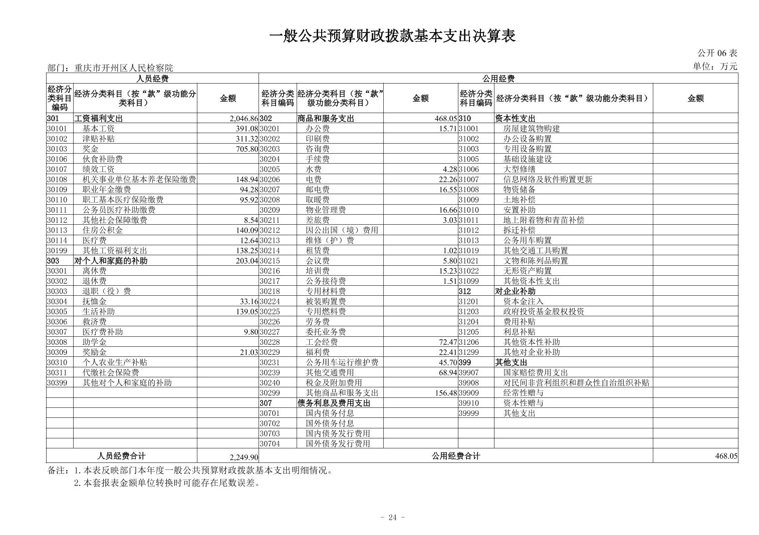 重庆市开州区人民检察院2024年度部门决算公开