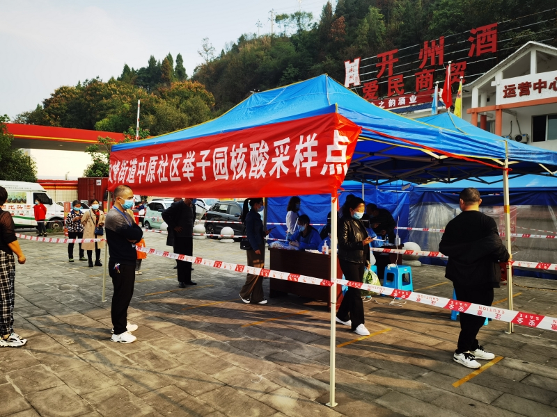 开州区检察院组织18名青年干部职工赶赴城市基层党建共建单位文峰街道中原社区核酸检测点,助力核酸检测登记工作。