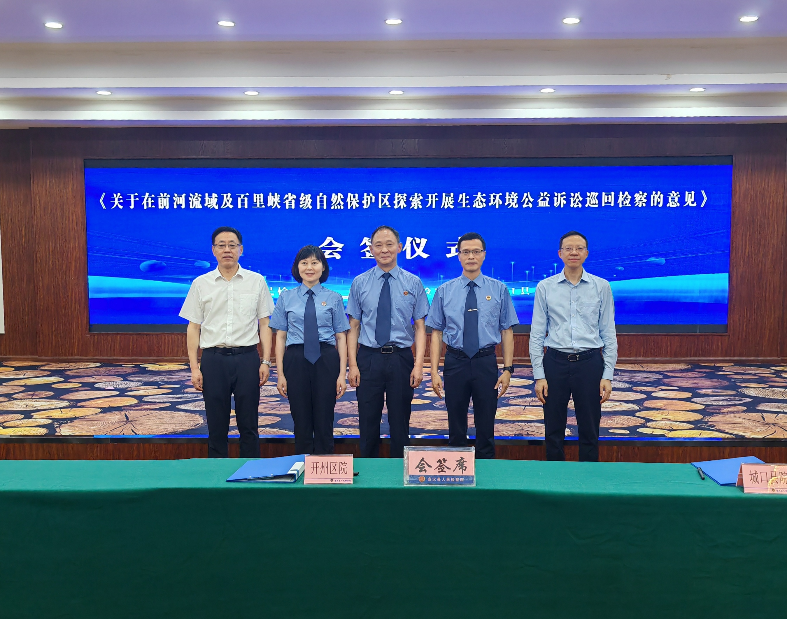 我院联合城口县、四川省宣汉县三地检察机关会签《探索开展生态环境公益诉讼巡回检察的意见》。聚焦生态环境保护领域存在的“跨流域、跨区域、跨领域”问题,探索开展“属地检察+巡回检察+专项治理”工作模式,围绕线索共享、专项治理、濒危植物保护、品牌培育等问题深入交流并达成共识。通过督促行政部门依法履职、强化工作衔接、监督裁判执行情况等9项工作措施,进一步发挥公益诉讼检察职能作用,为推进川渝生态文明建设、筑牢长江中上游生态安全屏障提供司法保障。