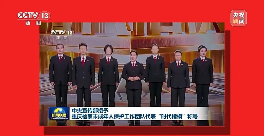 未成年人保护工作团队代表“时代楷模”称号,团队代表梅玫、龚珊、唐焕然等7名同志。