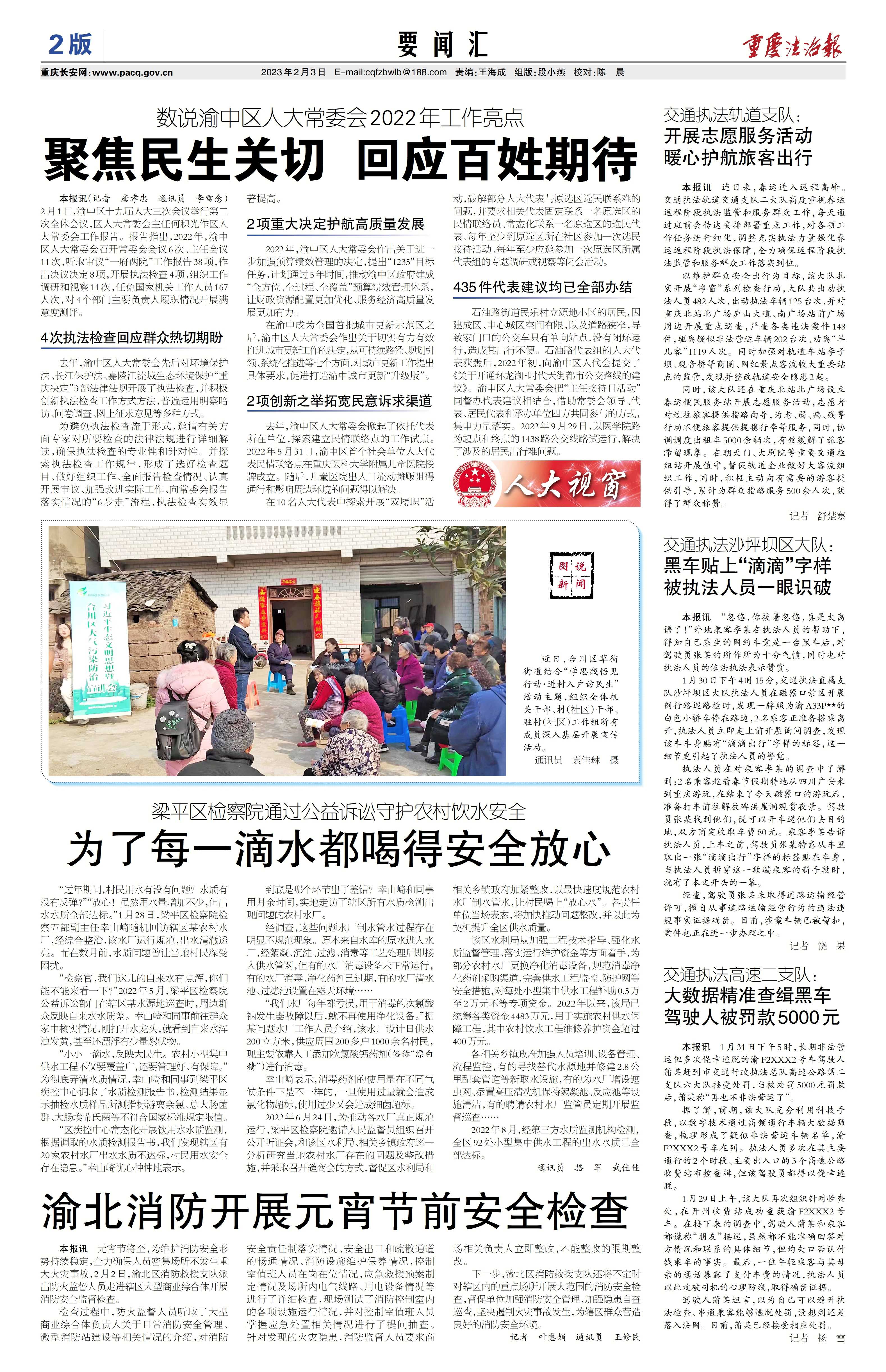 2023年2月3日,《重庆法治报》第2版刊登《为了每一滴水都喝得安全放心》一文,内容如下: