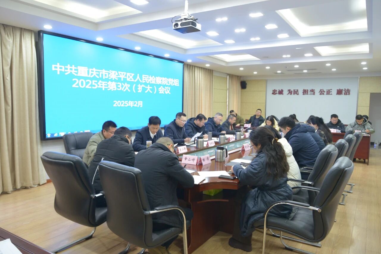 2月19日,梁平区检察院召开党组扩大会议,传达贯彻全市检察长会议精神,并结合实际情况,研究部署贯彻落实举措。全体院领导班子和中层干部参加会议。