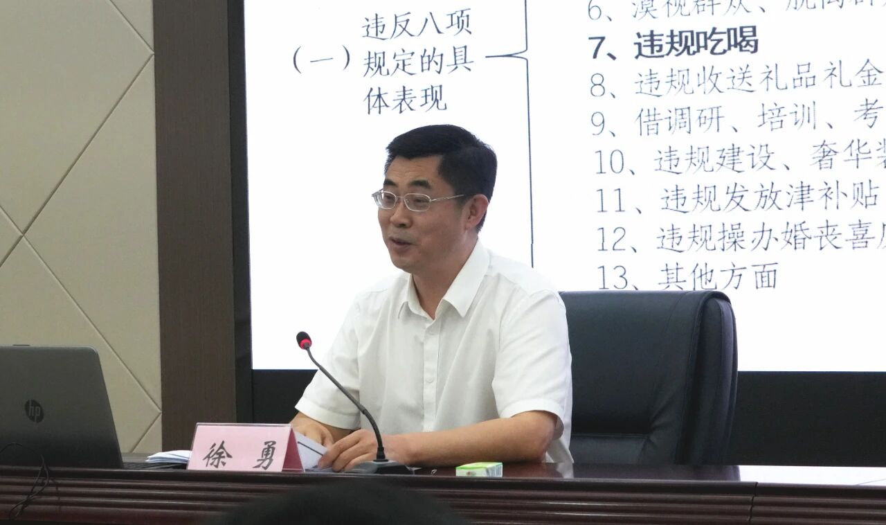 徐勇常委以“深入贯彻中央八项规定精神”为主题,紧密结合政法工作和检察实际,围绕违反中央八项规定的具体表现、干部履职担当的落脚点、如何提升履职担当的水平以及当前检察重点工作等四个方面进行了系统阐述和深入讲解。