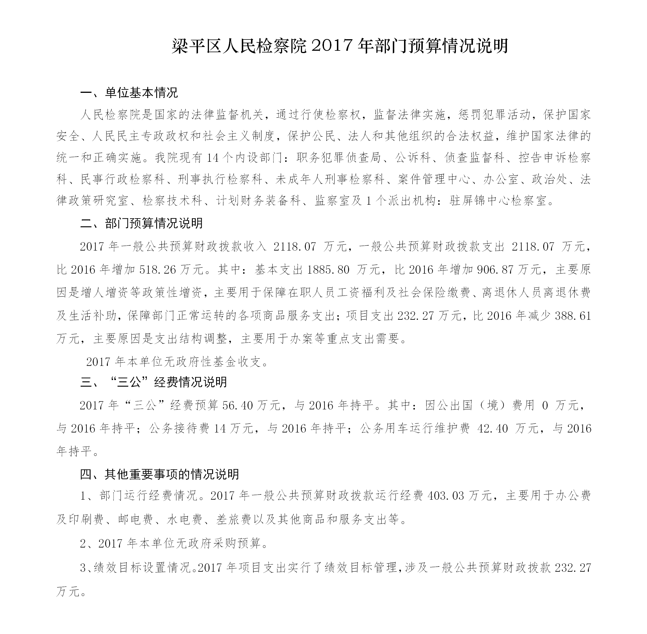 重庆市梁平区人民检察院2017年预算公开