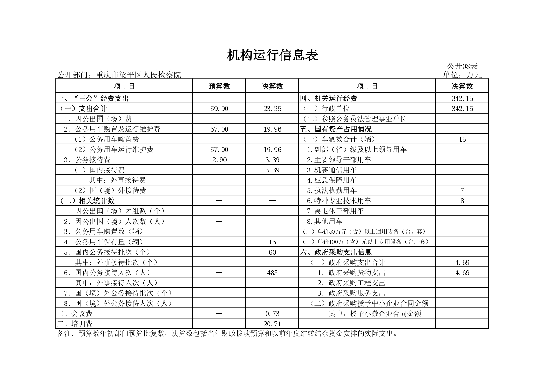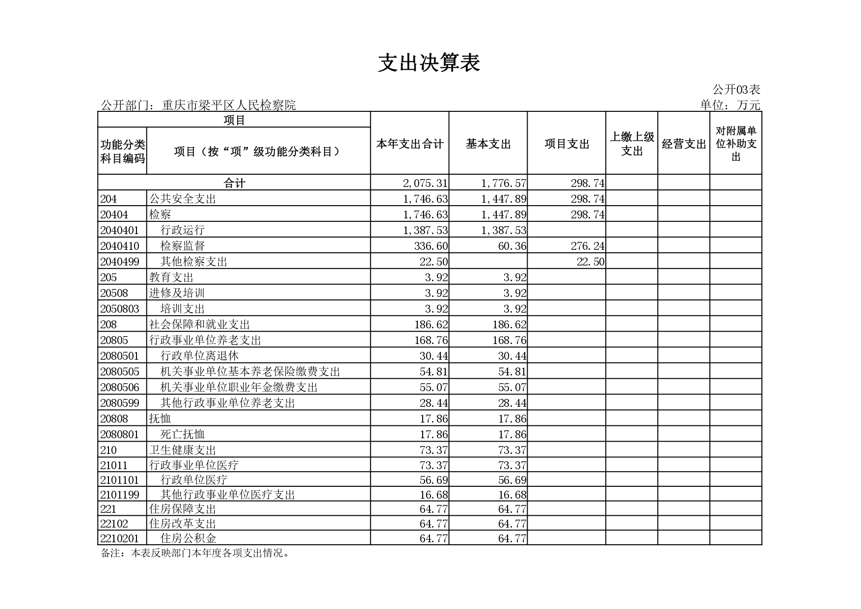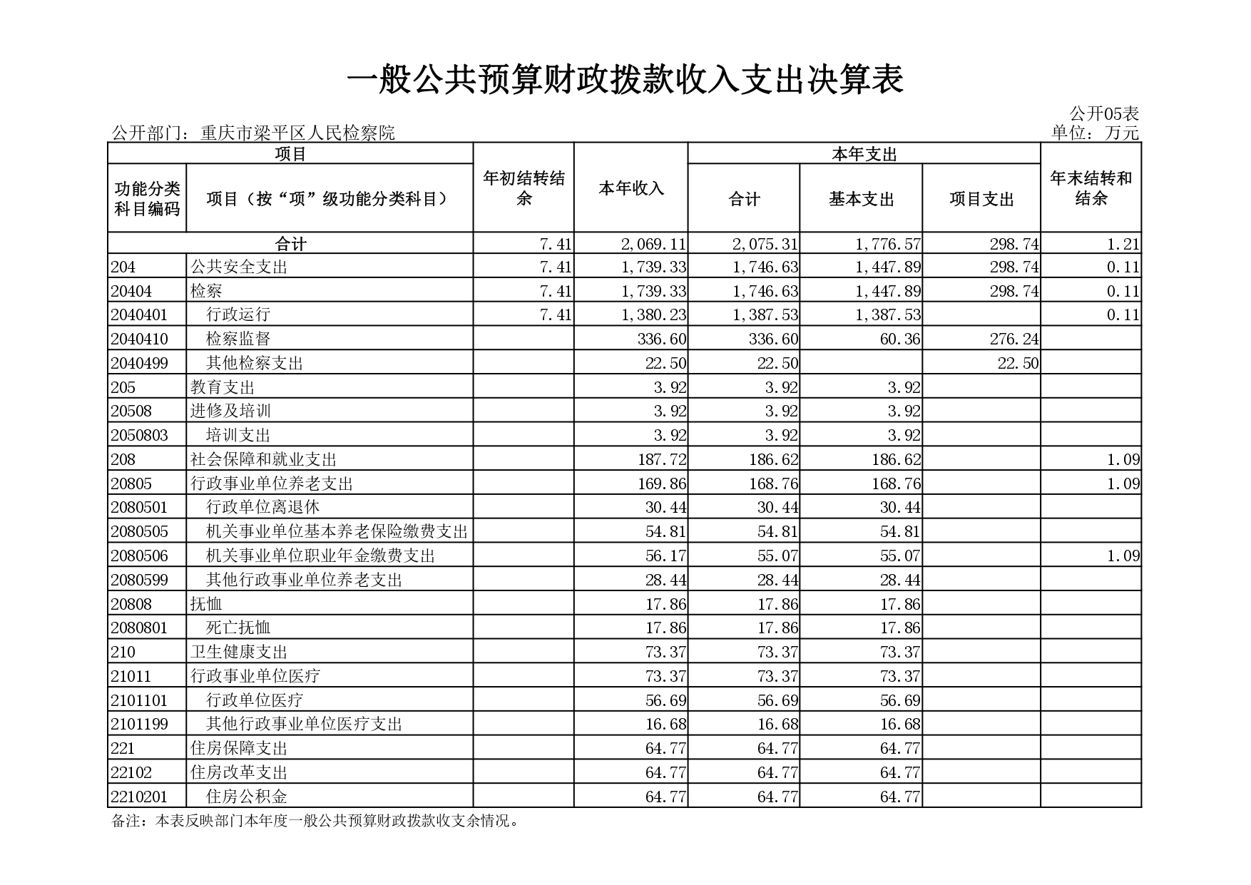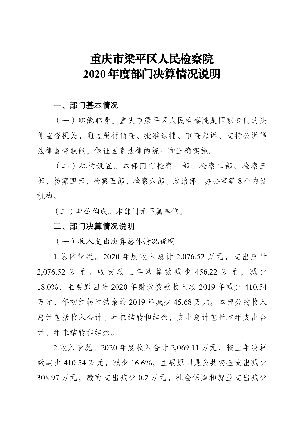 重庆市梁平区人民检察院2020年决算公开