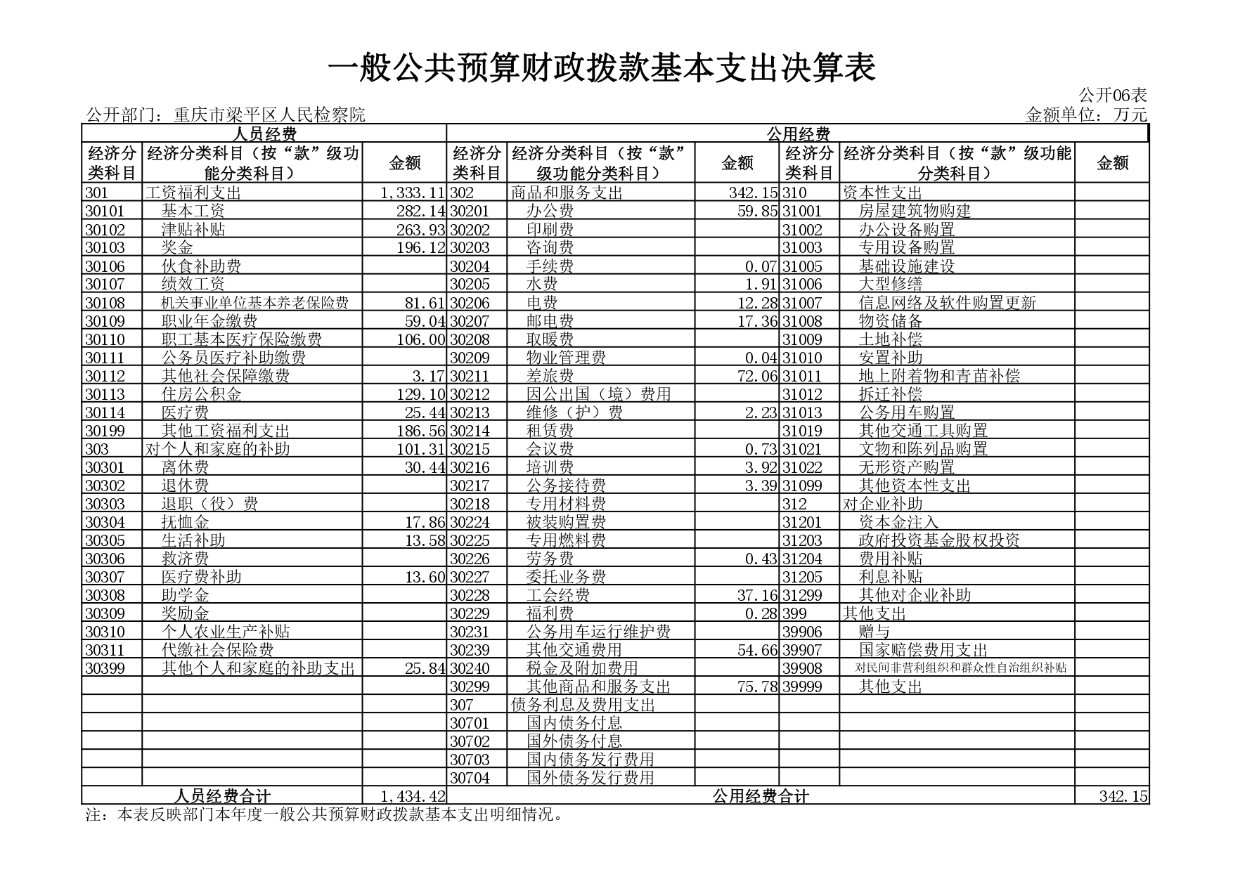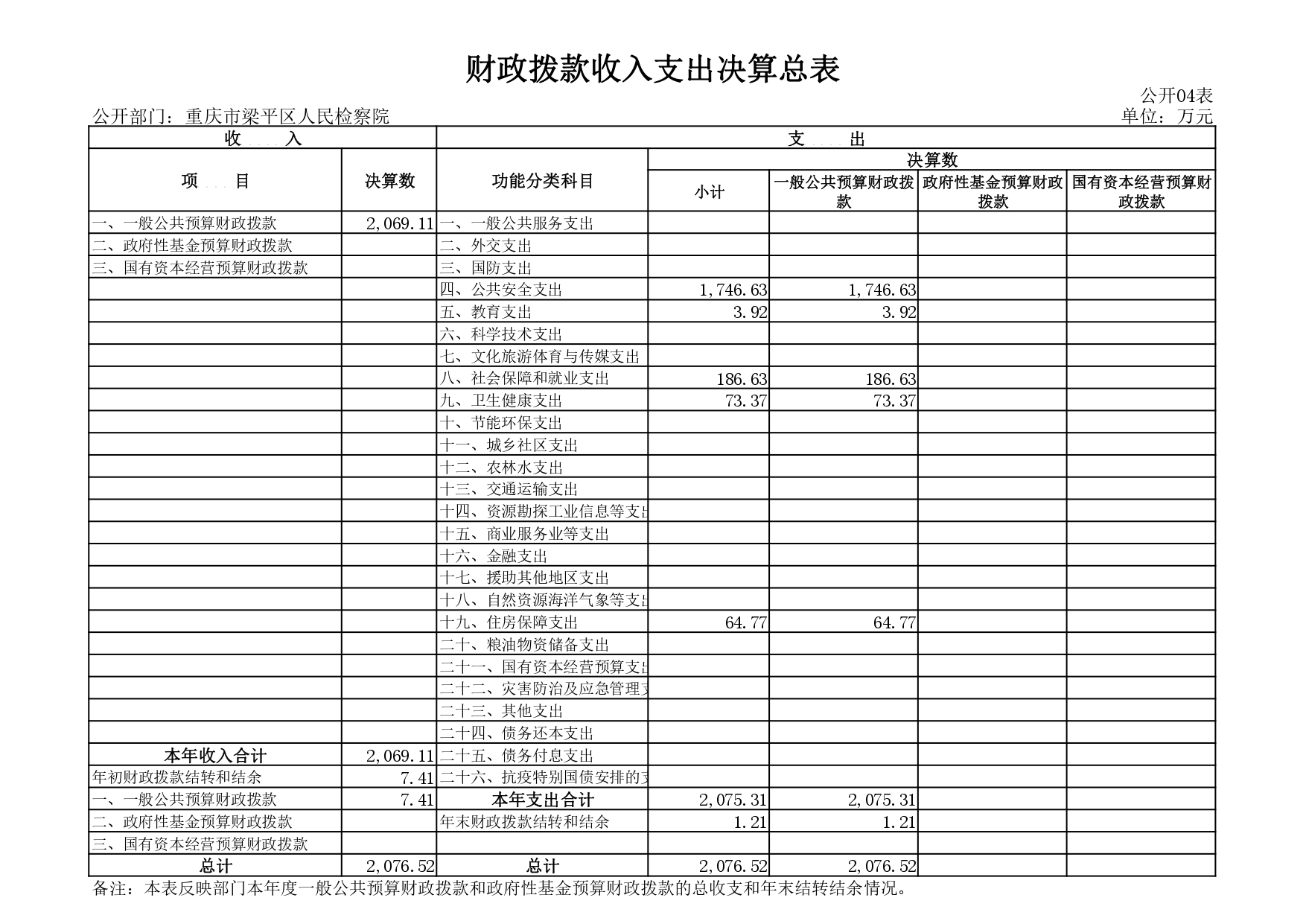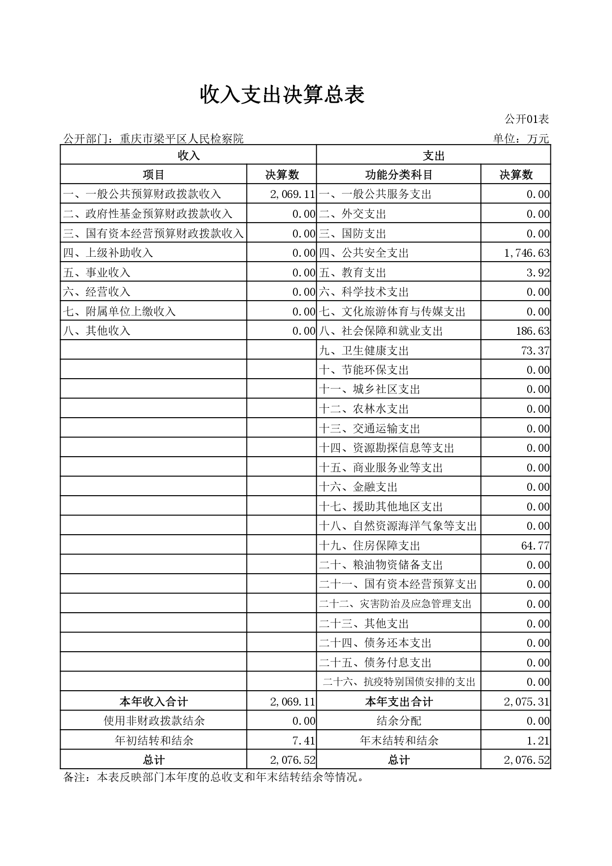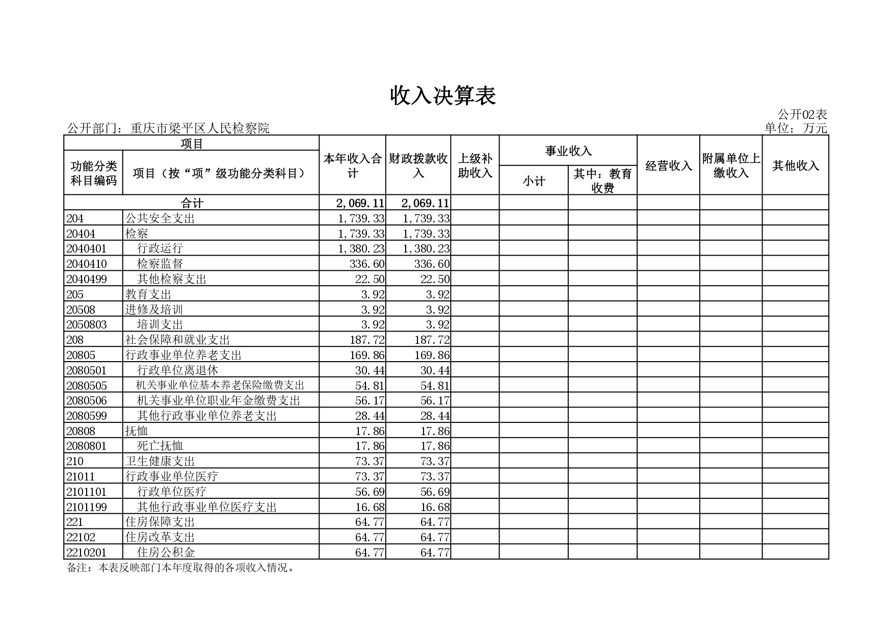 重庆市梁平区人民检察院2020年决算公开