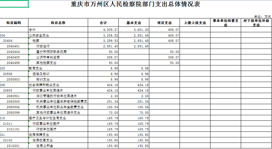 重庆市万州区人民检察院2018年部门预算情况说明