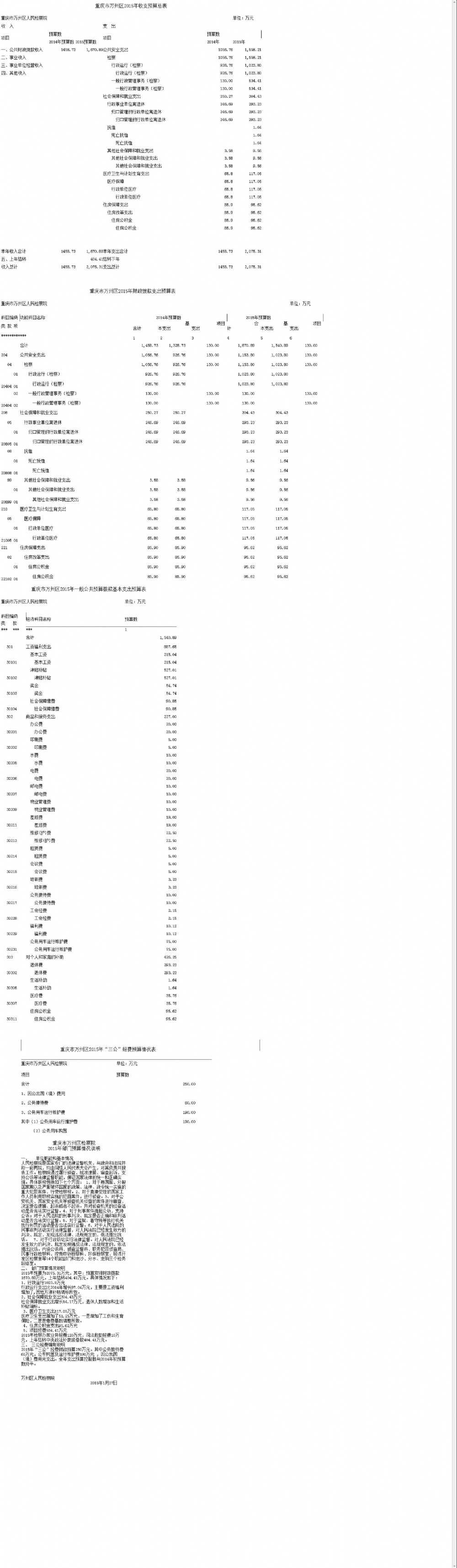 万州区人民检察院2015年收支公开表及预算公开说明