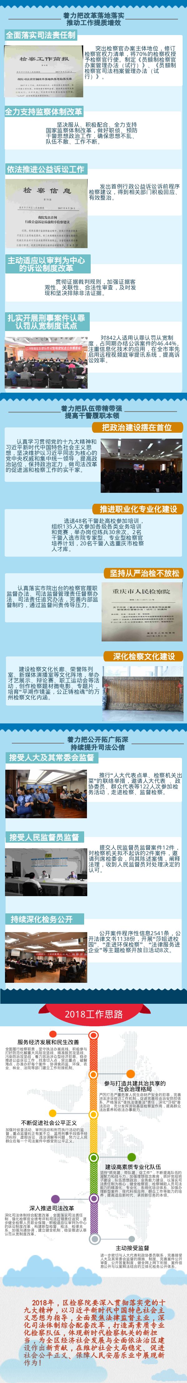 2017年,区检察院以迎接党的十九大胜利召开和认真贯彻落实十九大精神为统领,围绕万州经济社会发展大局和新时期检察工作任务,坚持以平安建设为主线、执法办案为中心、司法改革为动力,切实承担起服务发展、保障民生、维护稳定的政治责任,以扎实有效的检察工作迎接新时代、践行新机制、创造新业绩,为万州经济社会发展提供有力司法保障。