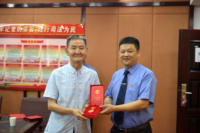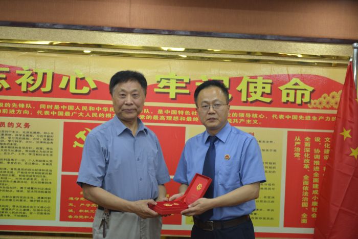 6月18日,巫山县检察院为光荣在党五十周年党员颁发纪念奖章。