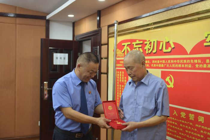 巫山县检察院为光荣在党五十周年党员颁发纪念章