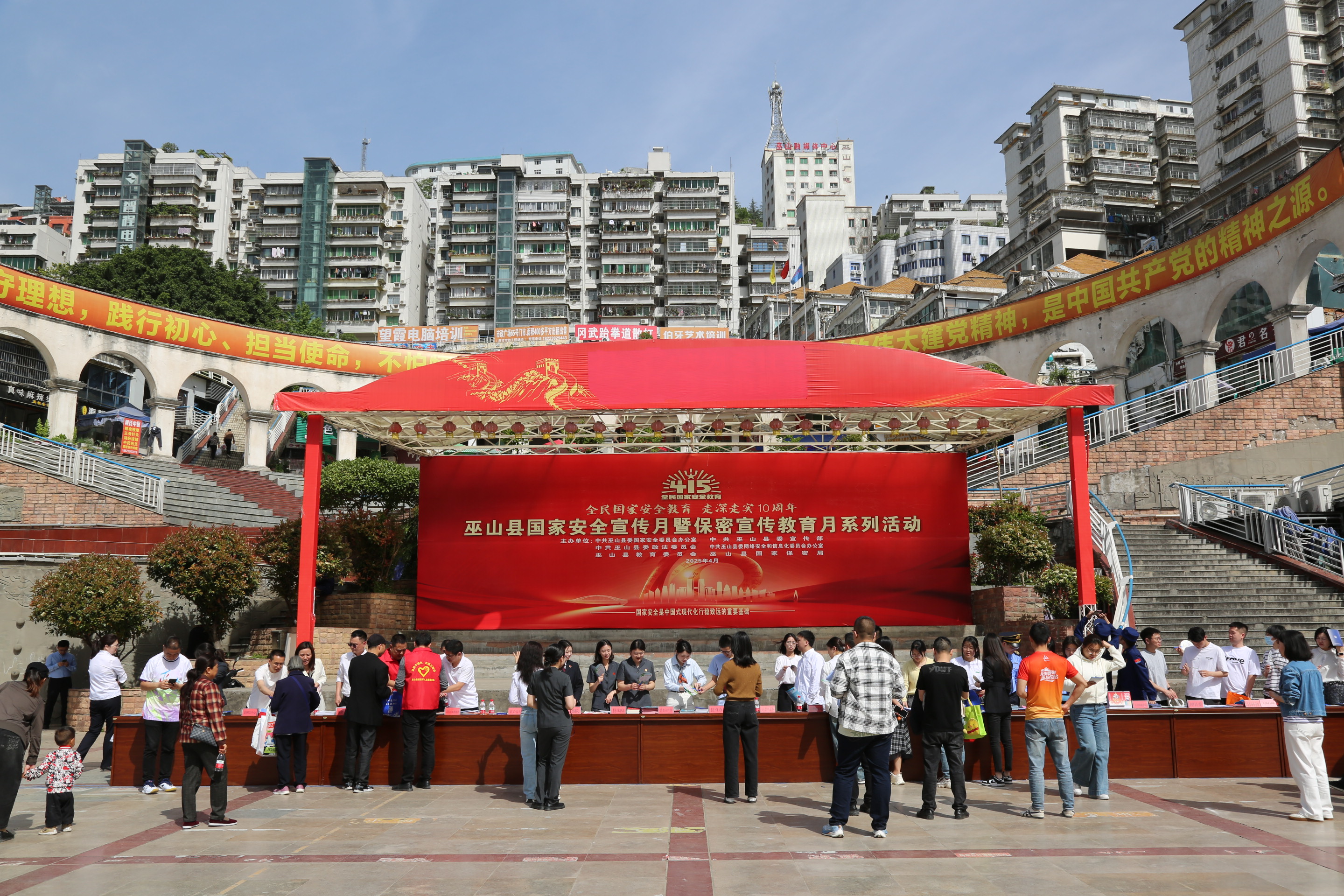 为全面践行总体国家安全观,推进国家安全法治宣传教育走深走实,增强群众依法防范和抵制危害国家安全行为的意识,形成维护国家安全的浓厚氛围。4月15日上午,我院检察干警来到巫山县市政广场参加巫山县国家安全宣传月暨保密宣传教育月系列活动。