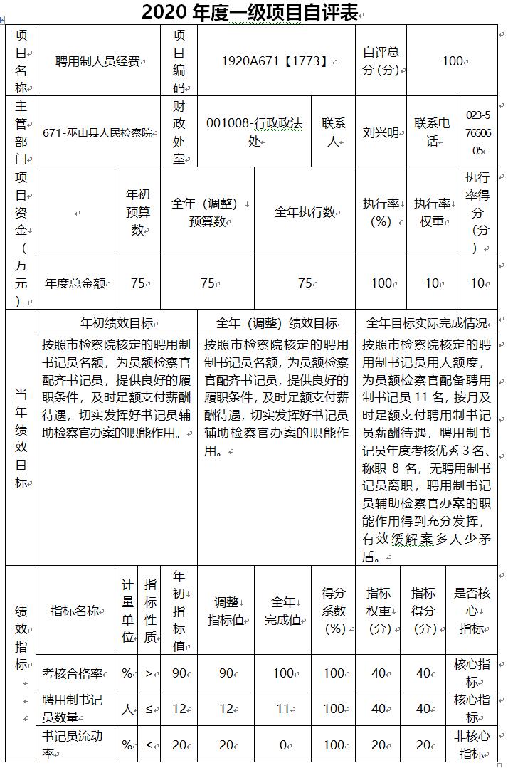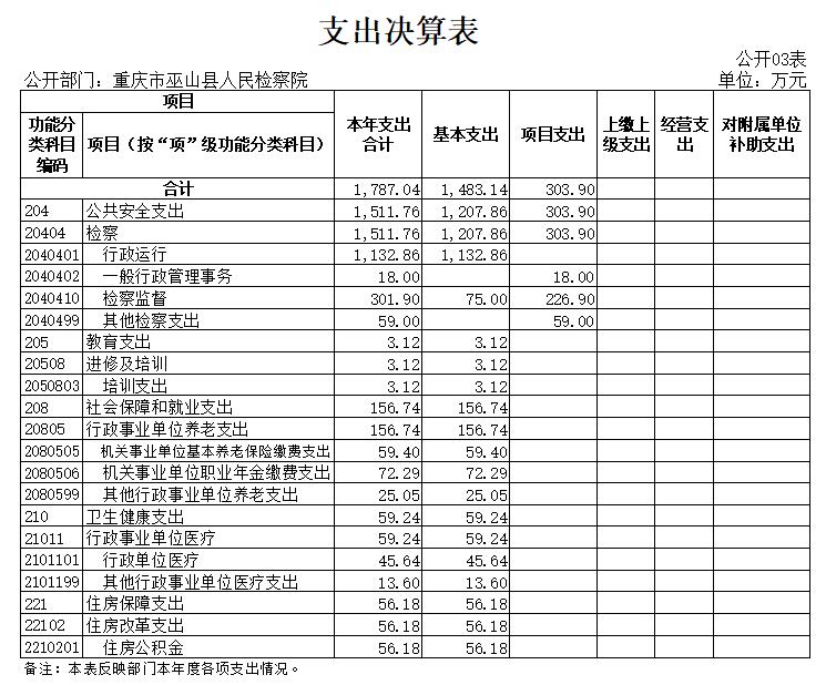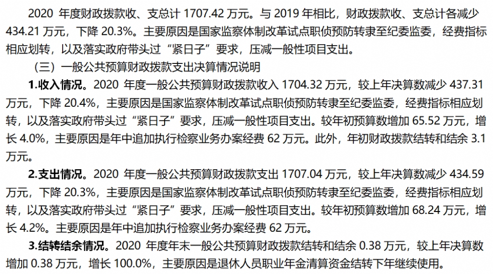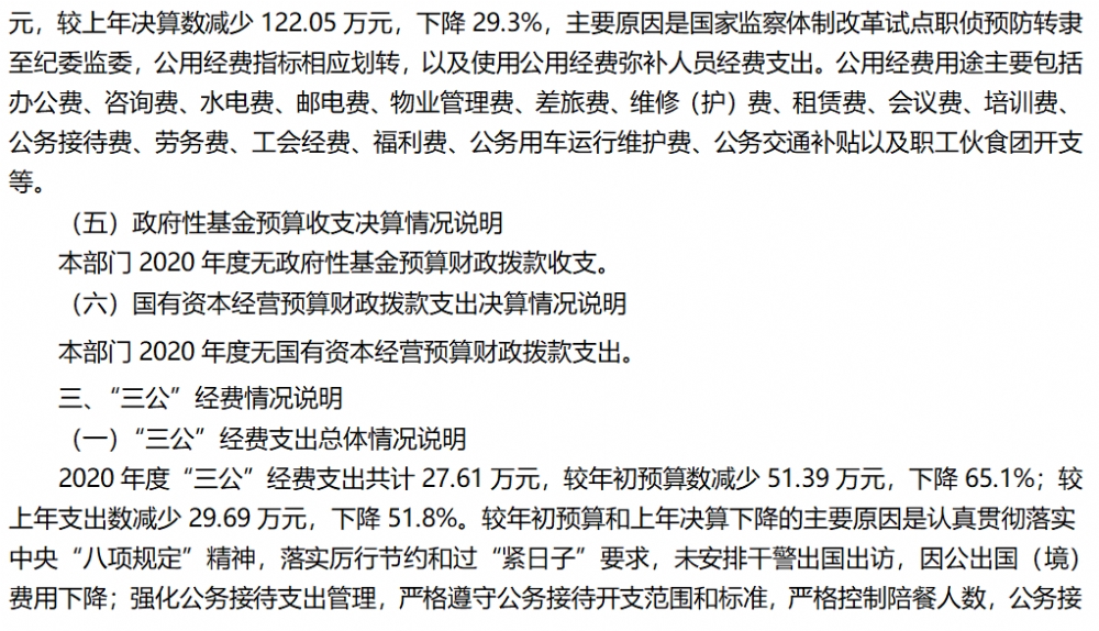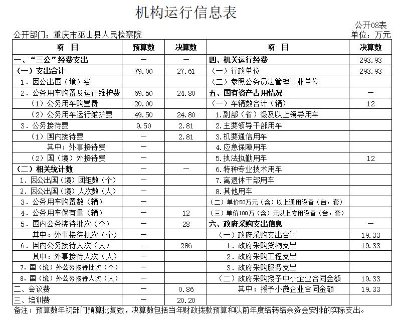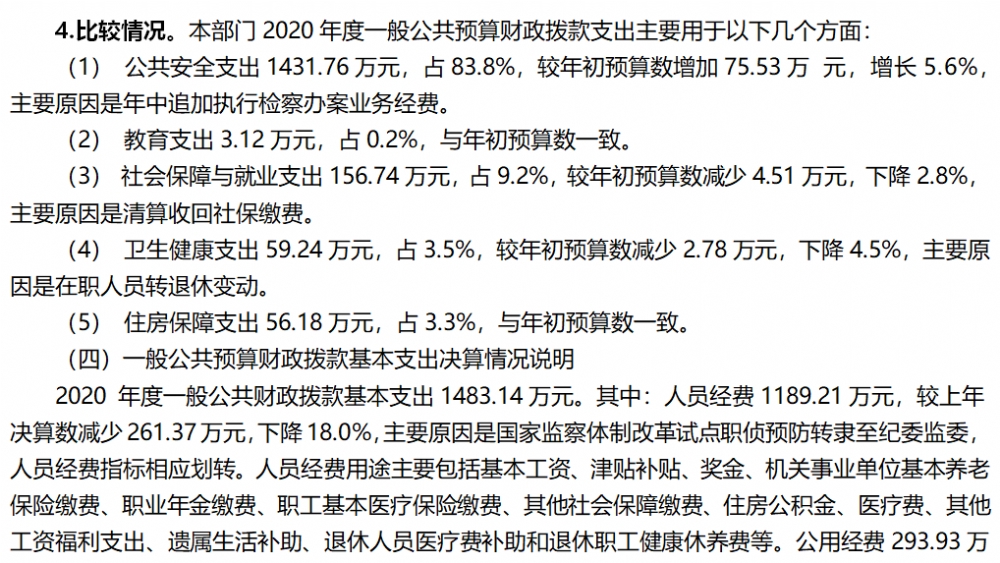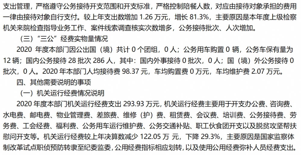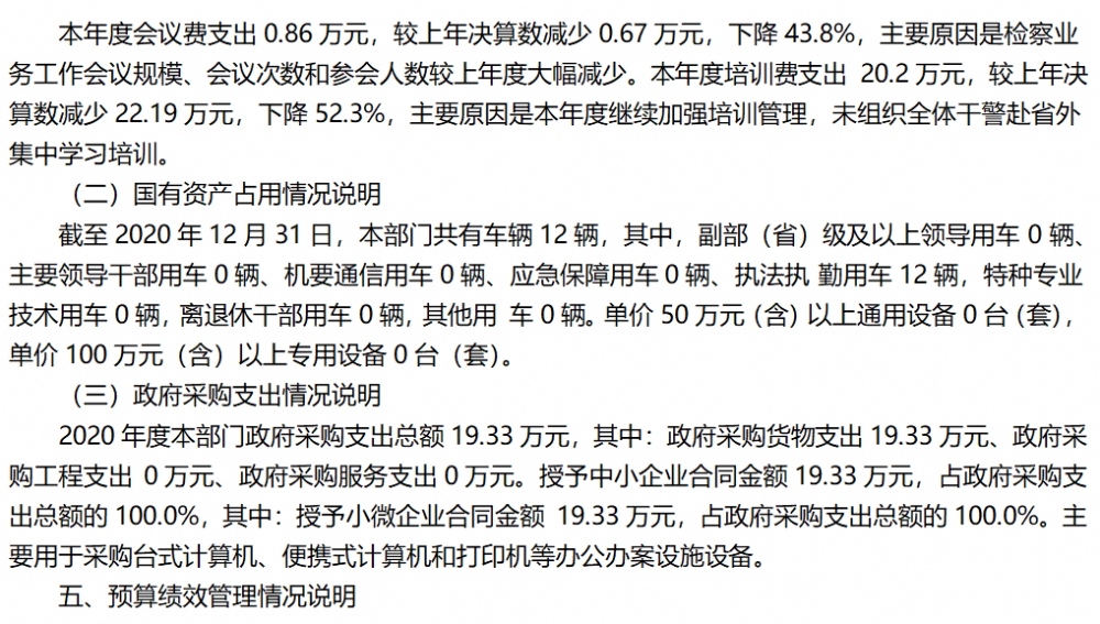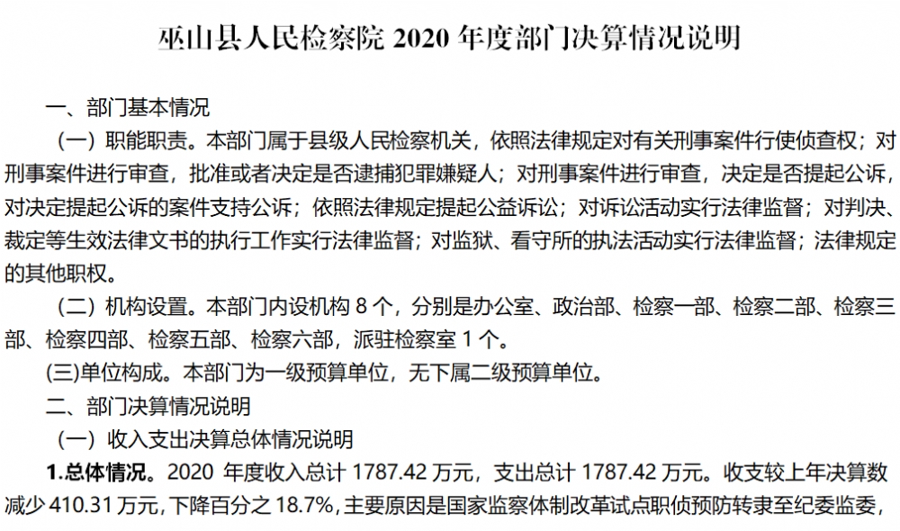 巫山县人民检察院2020年部门决算情况说明