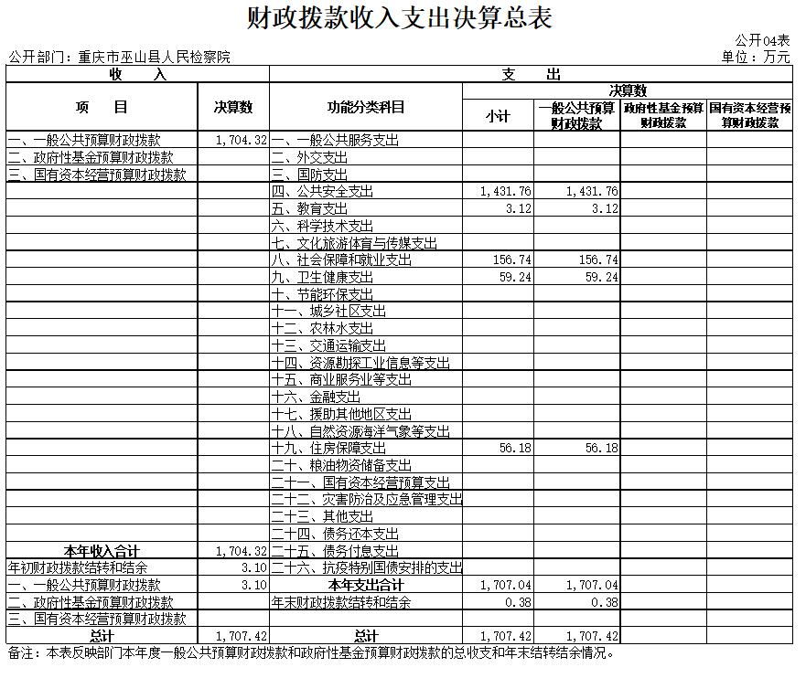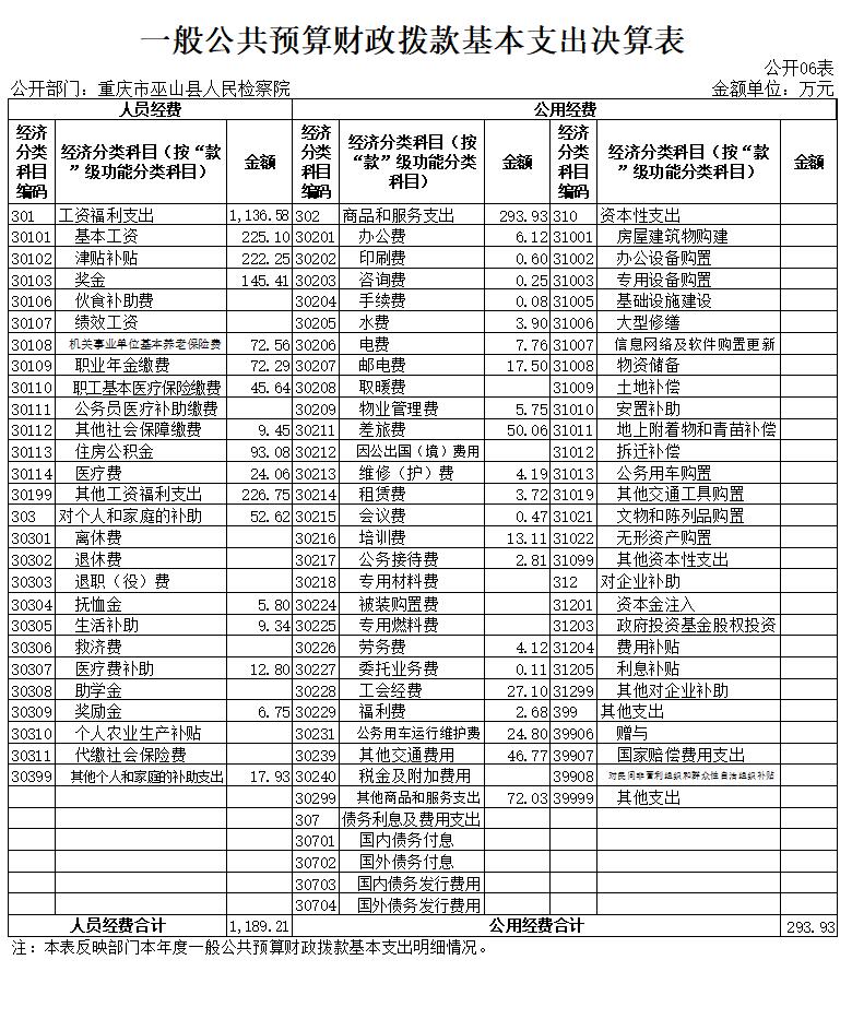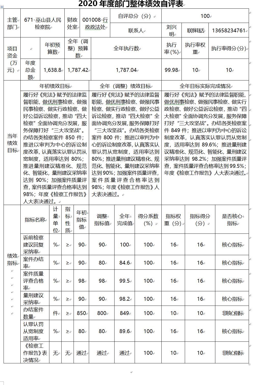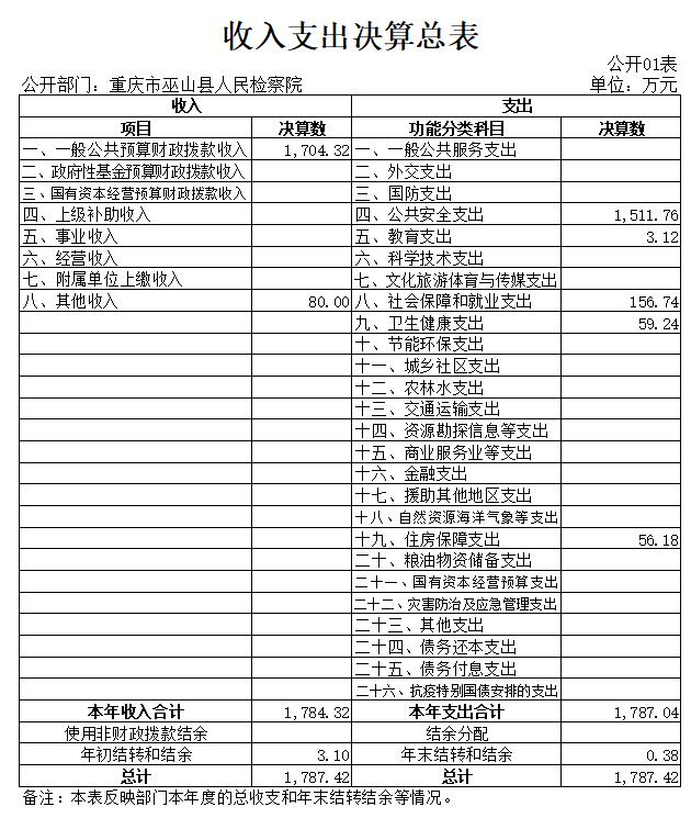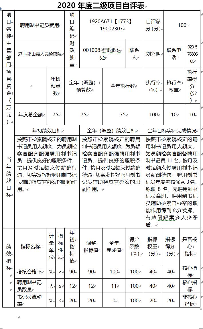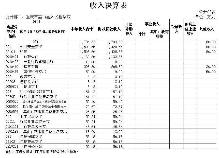 巫山县人民检察院2020年部门决算情况说明
