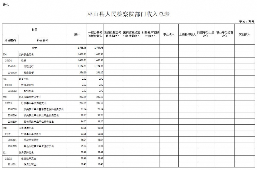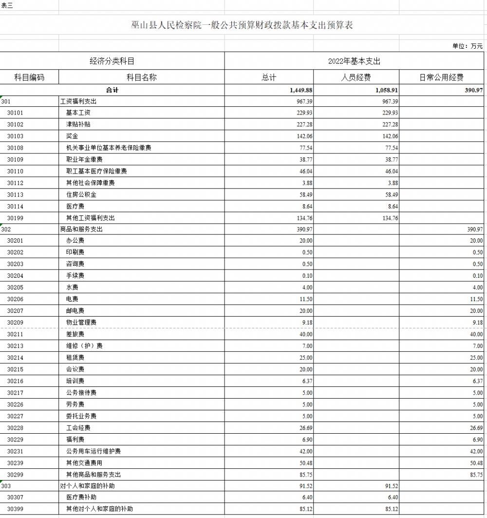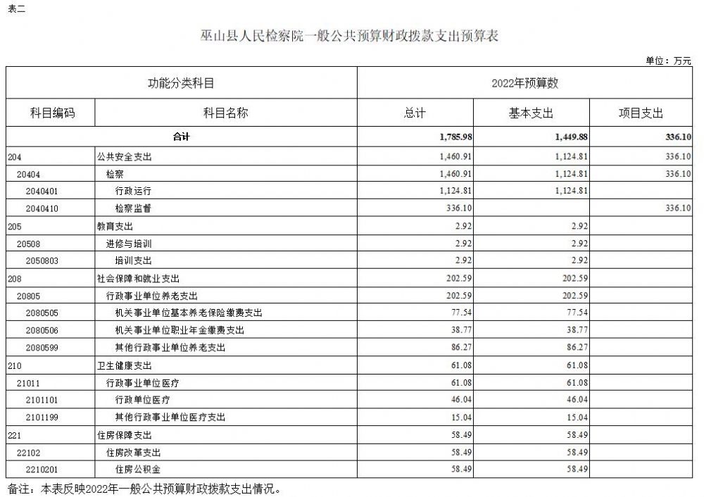 巫山县人民检察院2022年部门预算情况说明