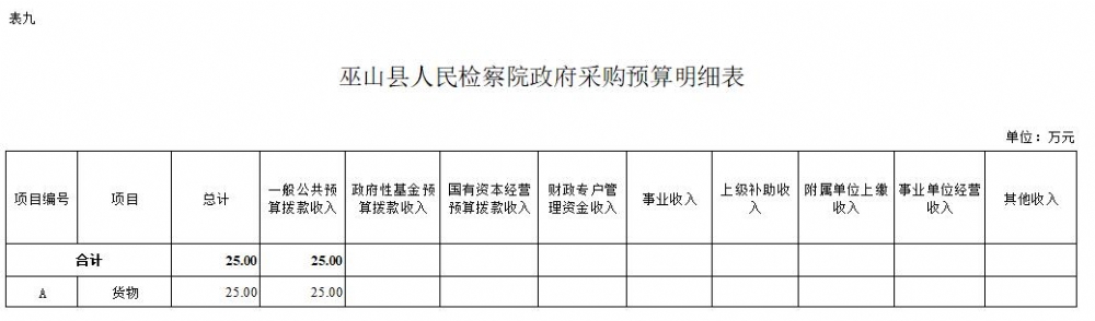 (二)政府采购情况。所属各预算单位政府采购预算总额25万元:政府采购货物预算25万元、政府采购工程预算0万元、政府采购服务预算0万元;其中一般公共预算拨款政府采购25万元:政府采购货物预算25万元、政府采购工程预算0万元、政府采购服务预算0万元。
