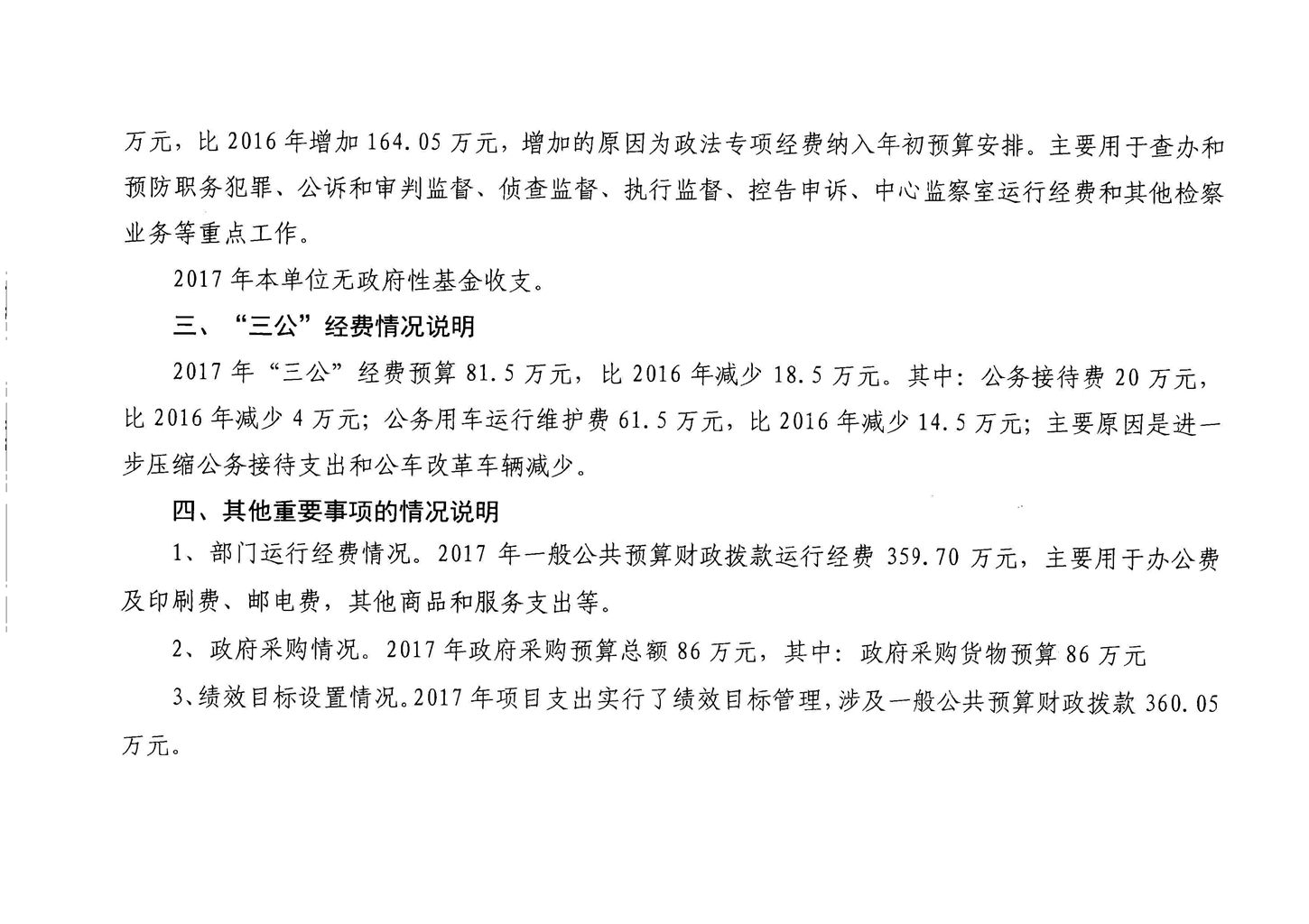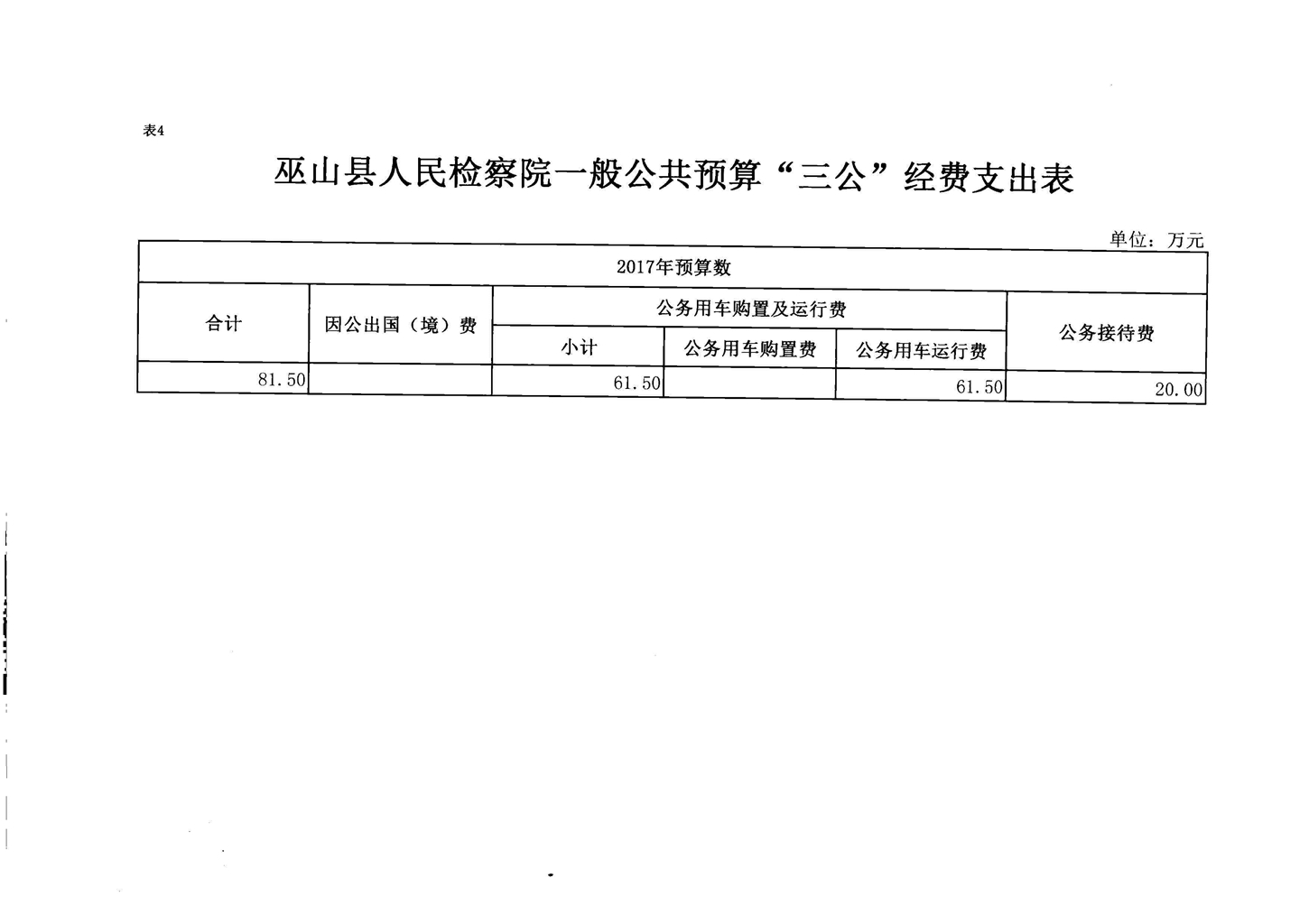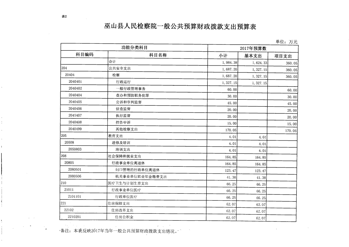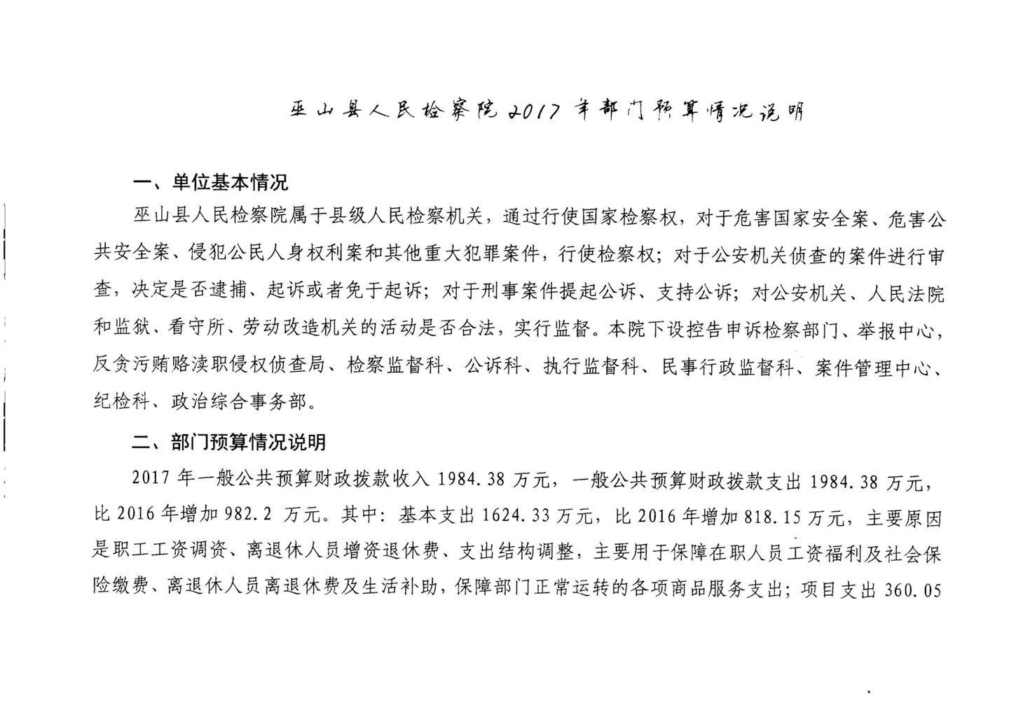 巫山县人民检察院2017年部门预算情况说明