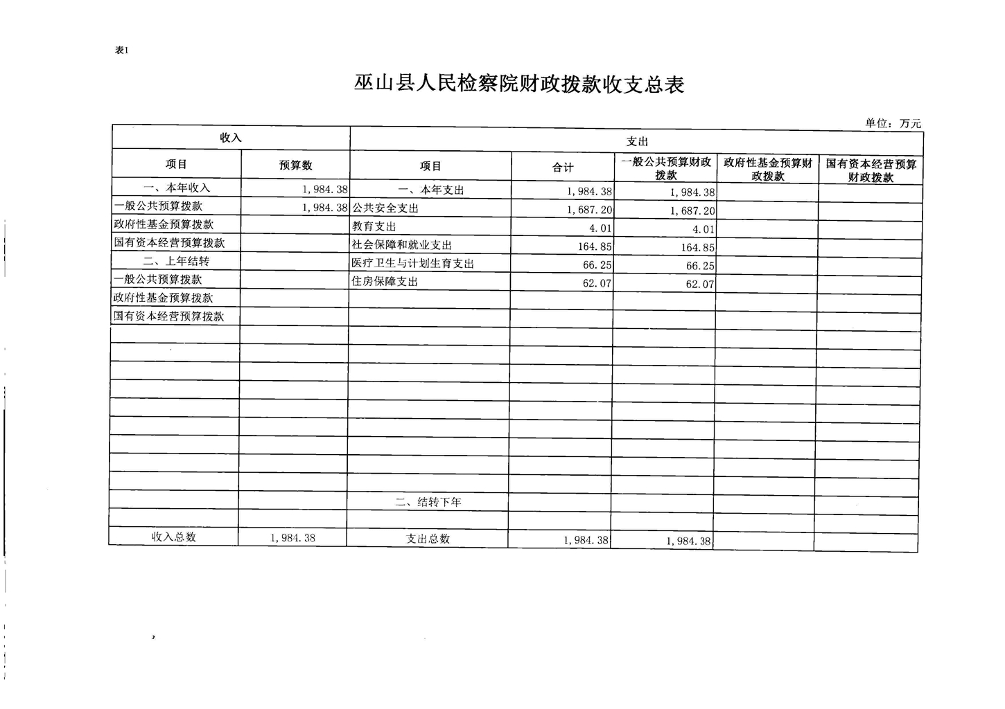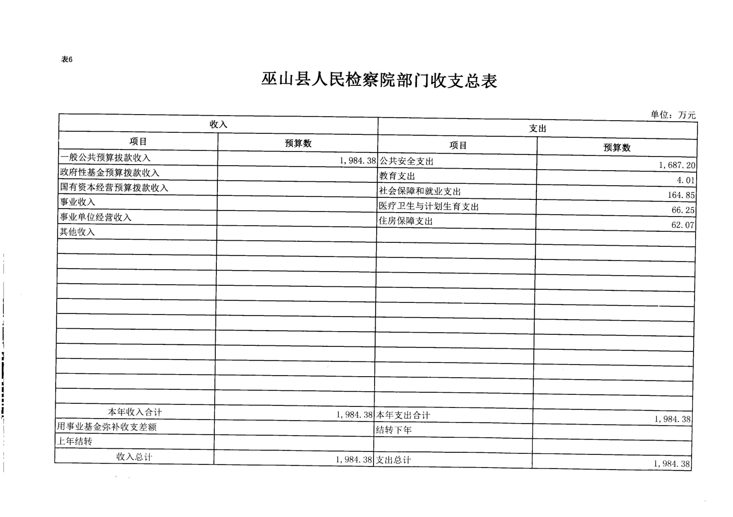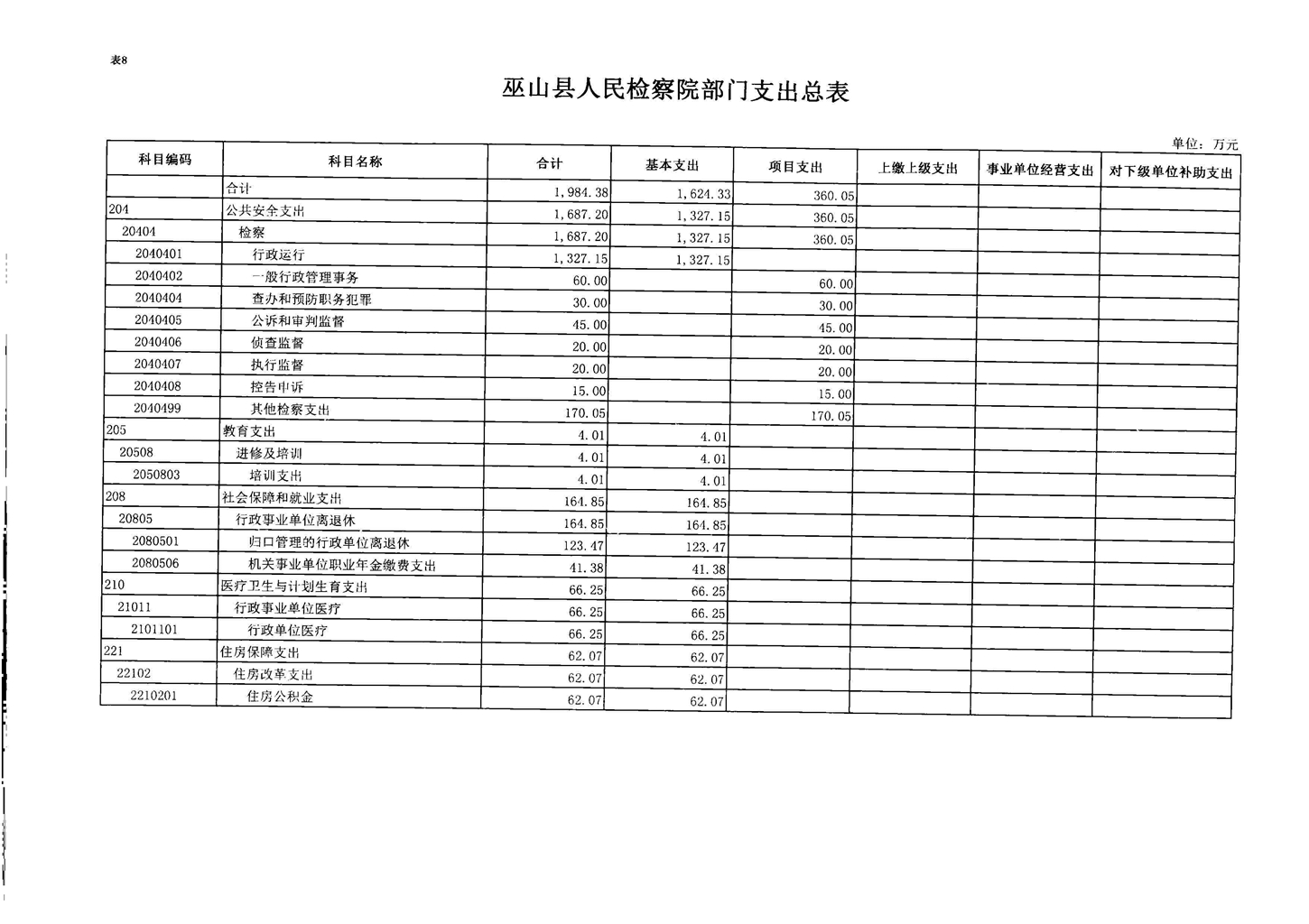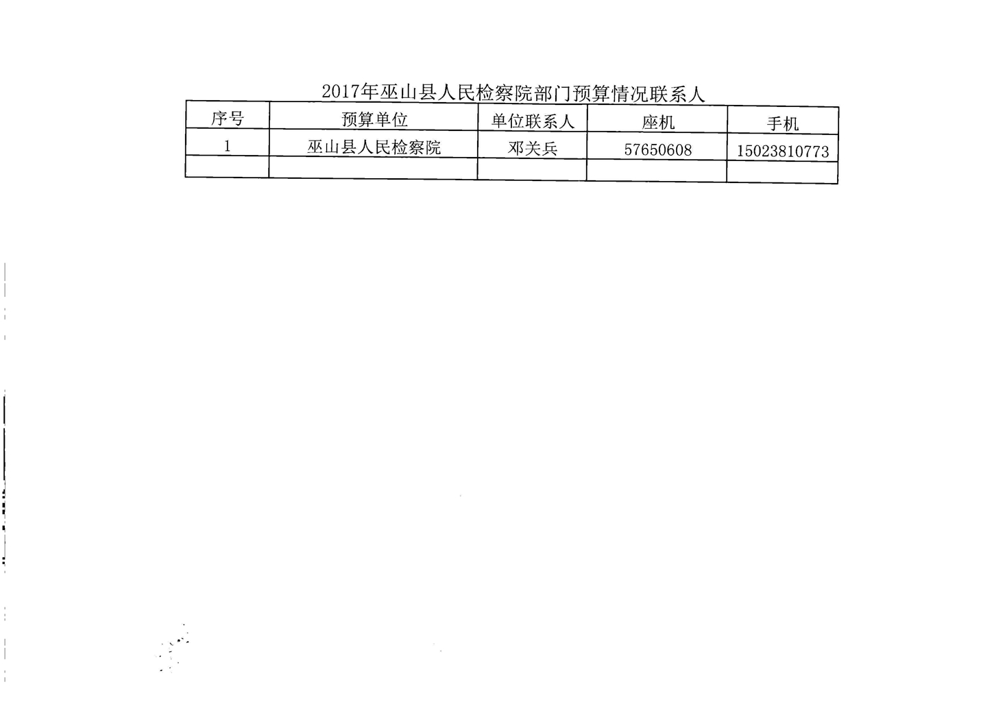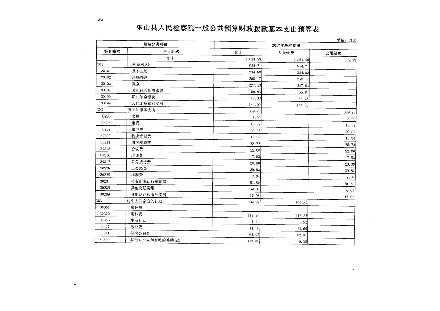 巫山县人民检察院2017年部门预算情况说明