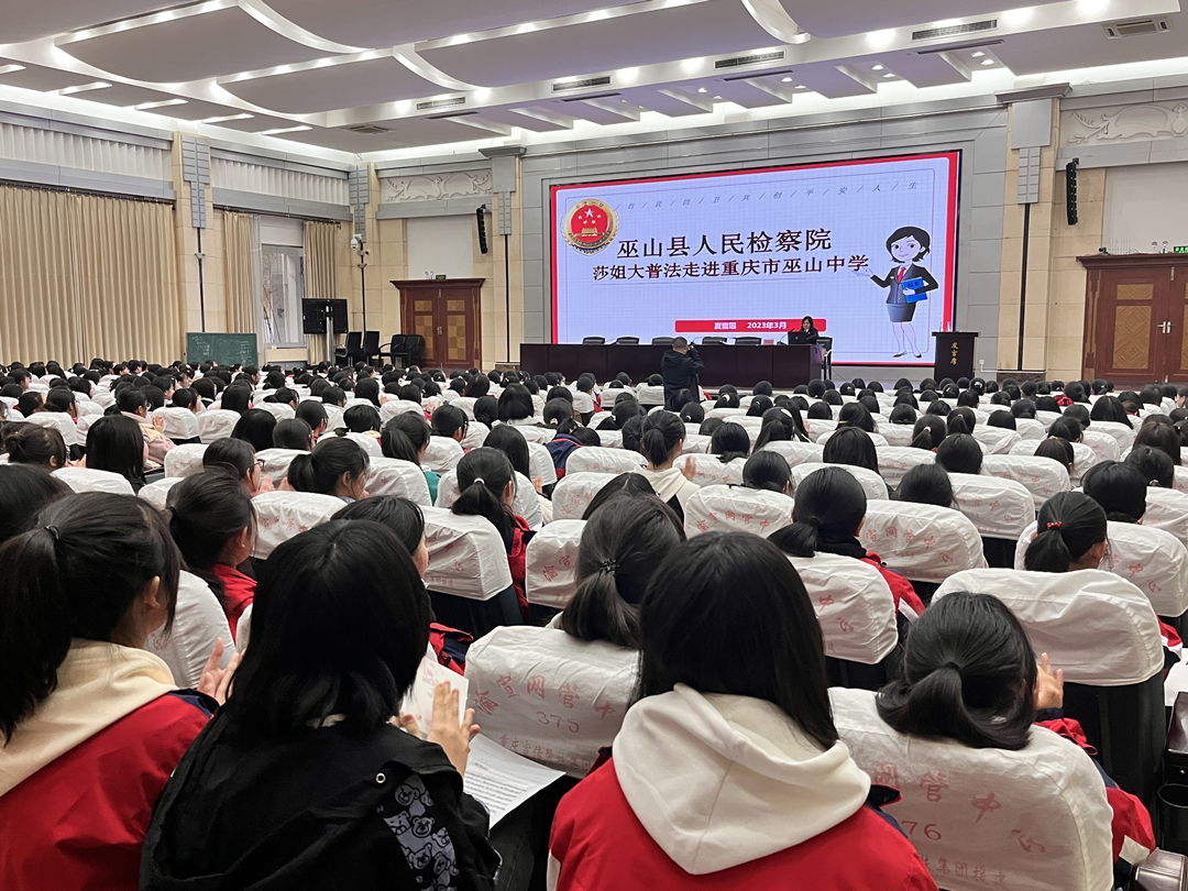 3月6日,巫山县院检察二部受重庆市巫山中学妇委会邀请,到该校为300余名高一住读女生上一堂题为“我的青春我做主”的法治课, 并送上“三八”妇女节祝福。