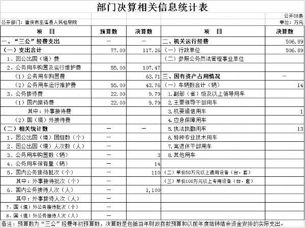 (一)“三公”经费支出总体情况说明。 2018年度本部门“三公”经费支出共计117.26万元,较年初预算数增加40.26万元,增长52.29%,主要原因是年初无公务用车购置费预算,本年度新购车辆3辆。较上年支出数增加35.86万元,增长44.05%,主要原因是办案业务量增大,且部分车辆达到报废年限,由于办案需要,本年度新购车辆3辆,较上年购车数增加2辆。
