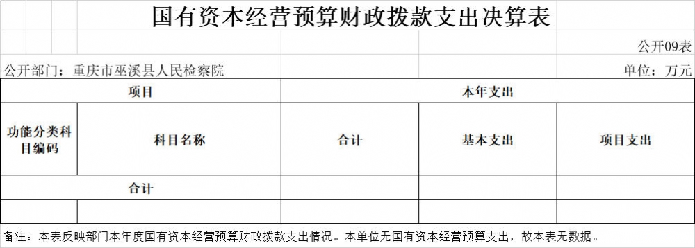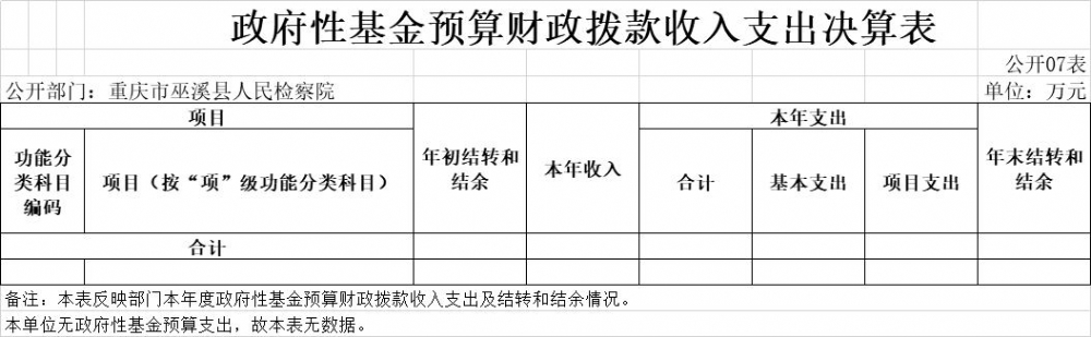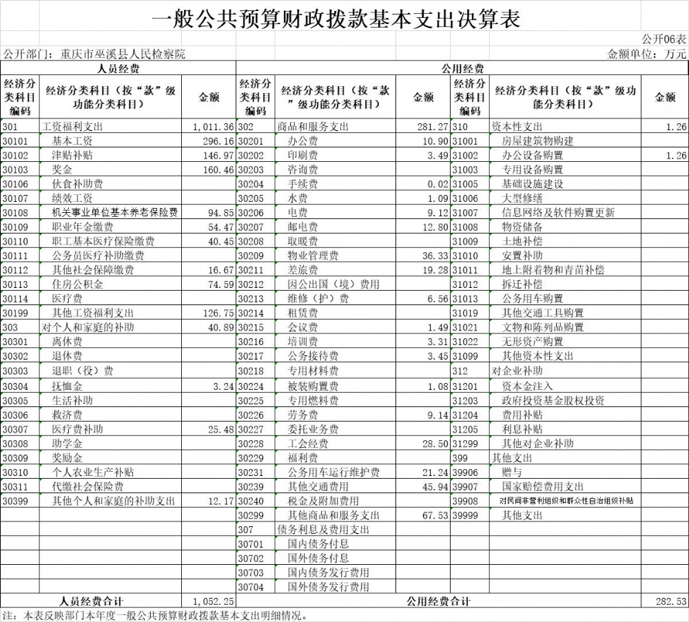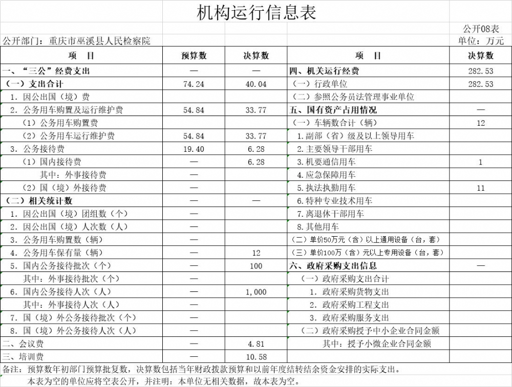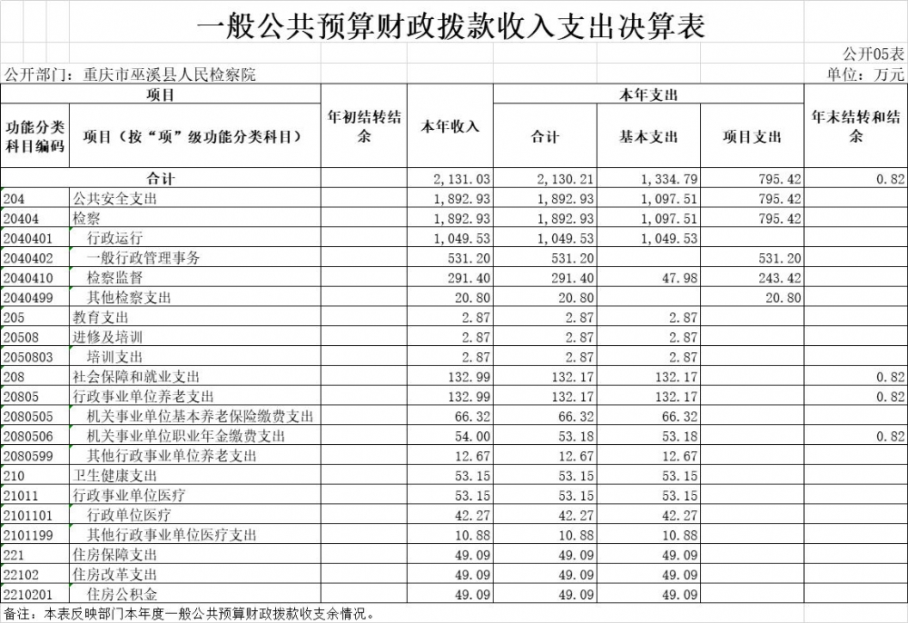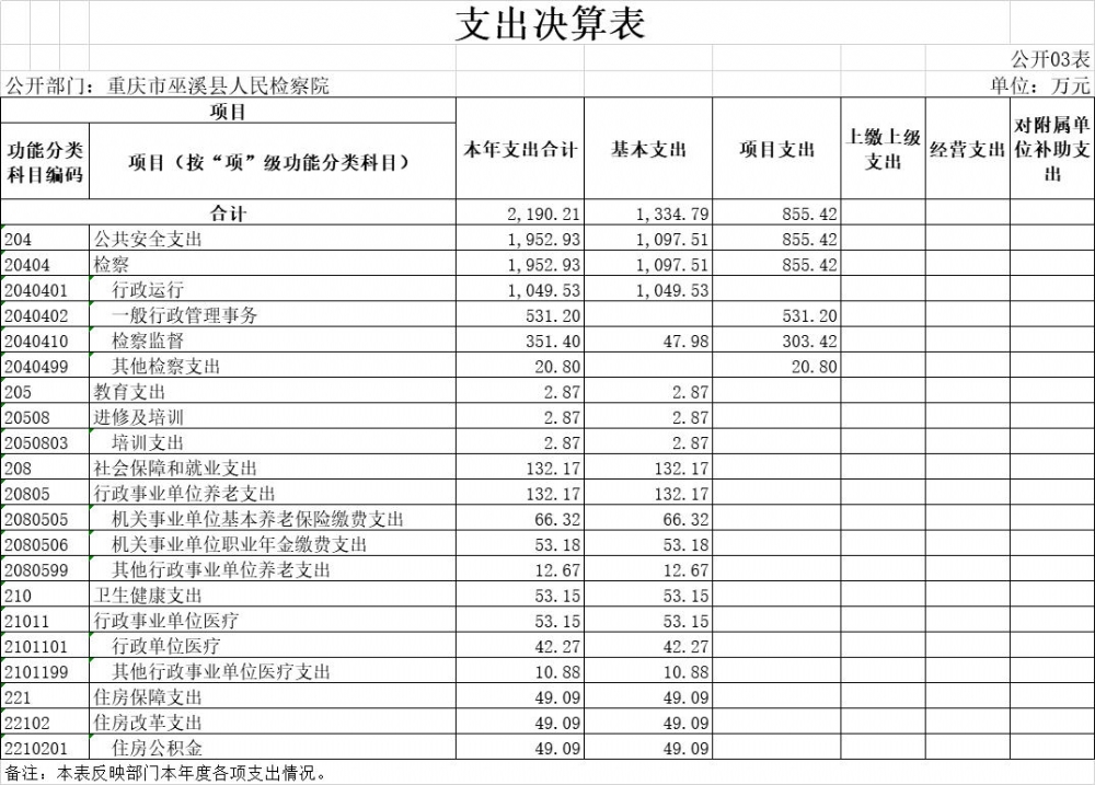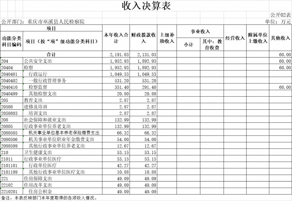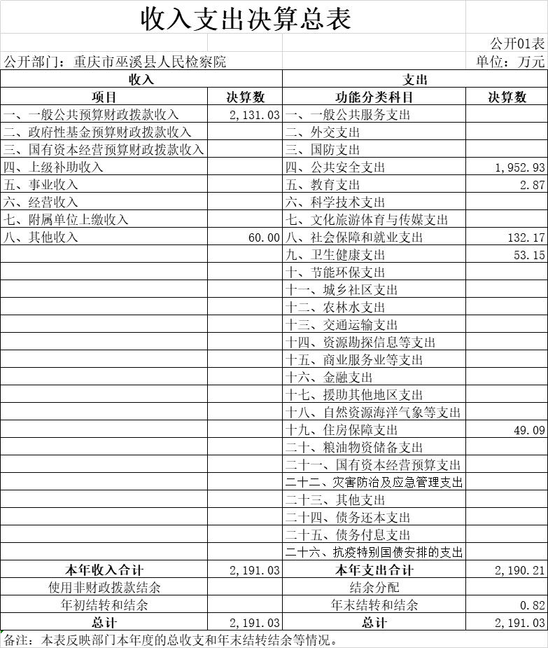 巫溪县人民检察院2020年部门决算公开