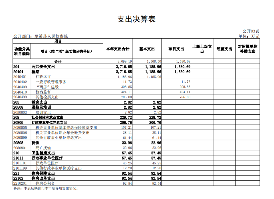 巫溪县人民检察院2022年度项目支出绩效自评表(一级项目) |