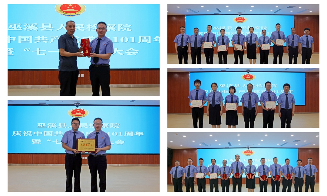 为弘扬伟大建党精神,凝聚强大奋进力量,继承和发扬党的光荣传统和优良作用,进一步激励全体检察干警坚定理想信念、强化使命担当。7月1日,巫溪县检察院召开庆祝中国共产党成立101周年暨“七一”表彰大会。院党组成员、政治部主任黄元波主持会议,院党组书记、检察长阮能文出席会议并宣布成立机关党委及机关纪委,全院干警及部分退休干警参会。