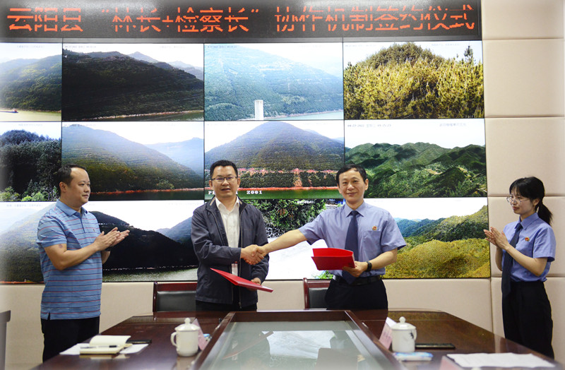4月27日, 我院与县林长办联合签署《关于推行“林长”+“检察长”协作机制意见》,并为“云阳县生态修复公益林”揭牌。市人大代表、 公益保护志愿者、公益诉讼观察员等十余人受邀参加活动。