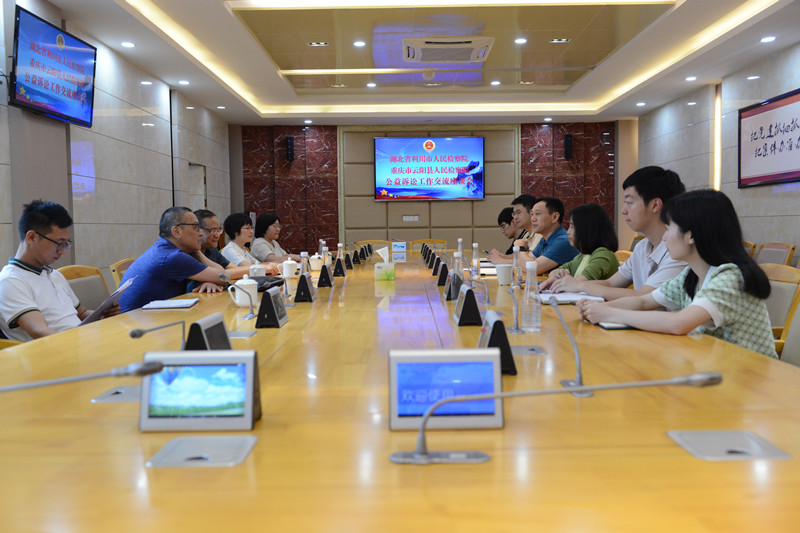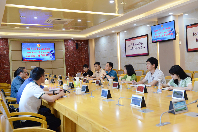 6月8日,湖北省利川188体育 党组副书记、副检察长李晓兵一行来我院开展公益诉讼工作座谈会,院党组成员、副检察长丁卫东以及相关部门干警参加座谈。