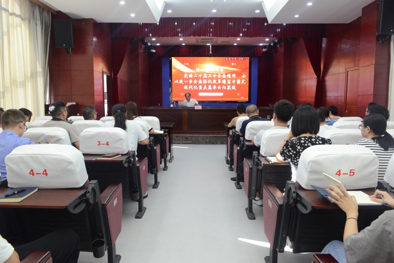9月13日,我院举行学习贯彻党的二十届三中全会精神宣讲会。县委宣讲团成员、县政府党组成员,县政府办公室党组书记、主任蒋绪云作专题宣讲,全体在家院领导、全院干警参加。