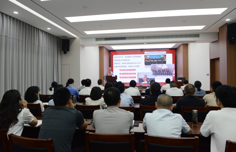 为深入学习贯彻习近平总书记在全国劳动模范和先进工作者表彰大会上的重要讲话精神,落实188体育 《关于开展向谭玉文同志学习活动的决定》,充分发挥先进典型示范引领作用,5月21日,我院特邀“全国先进工作者”谭玉文同志来我院作先进事迹报告。院领导、检委会专职委员和全体干警参加会议。