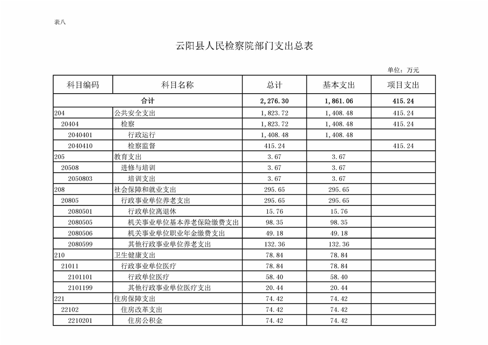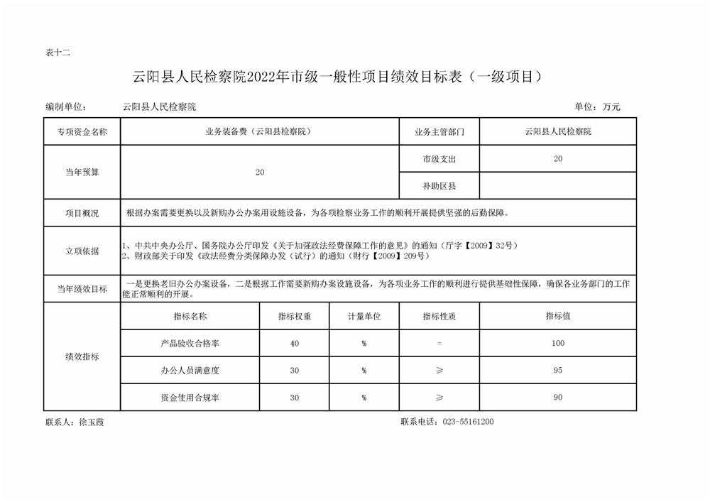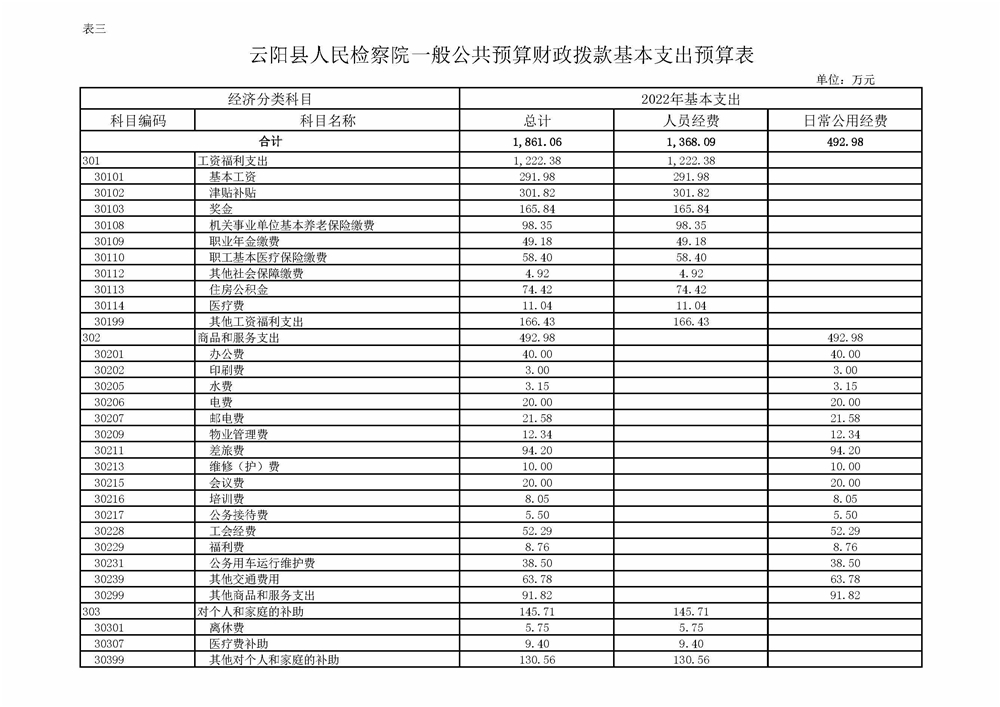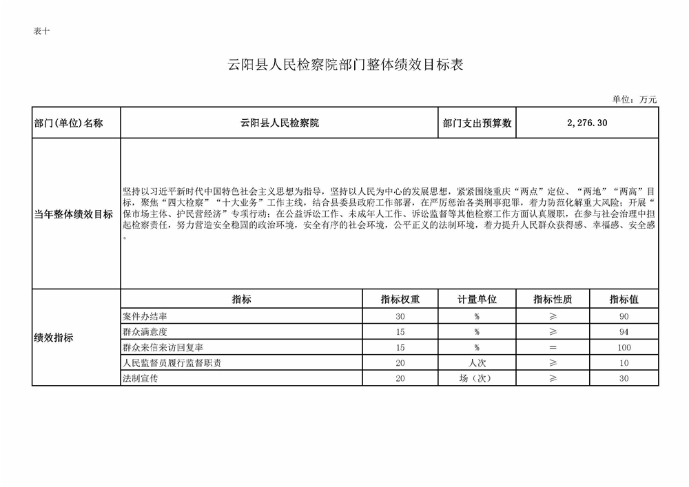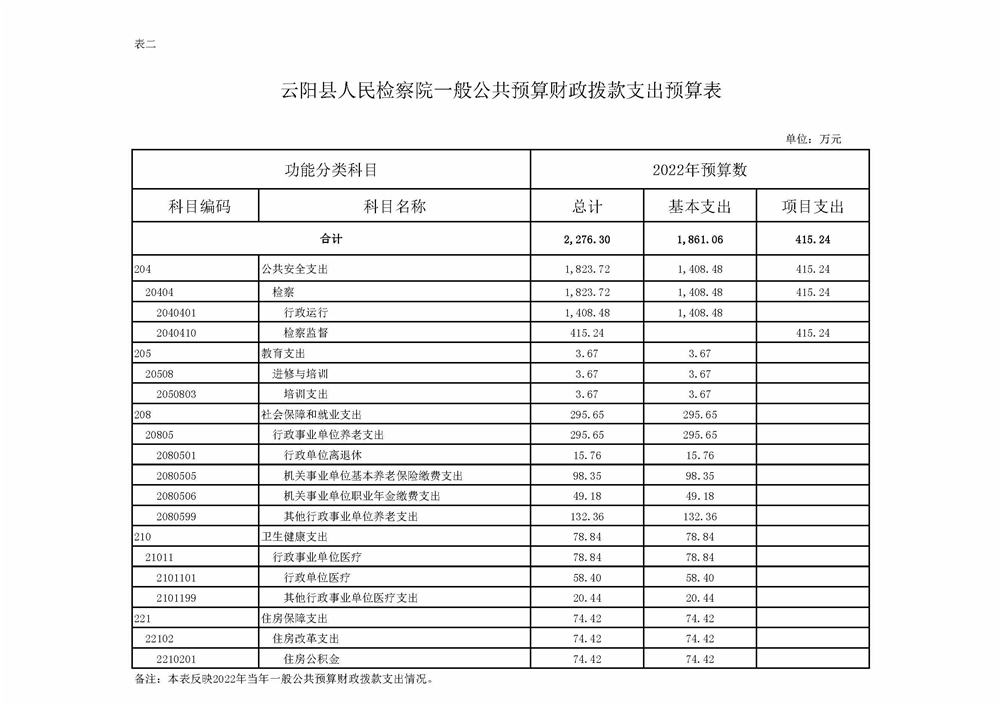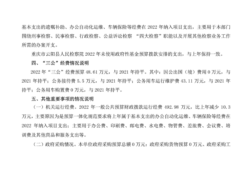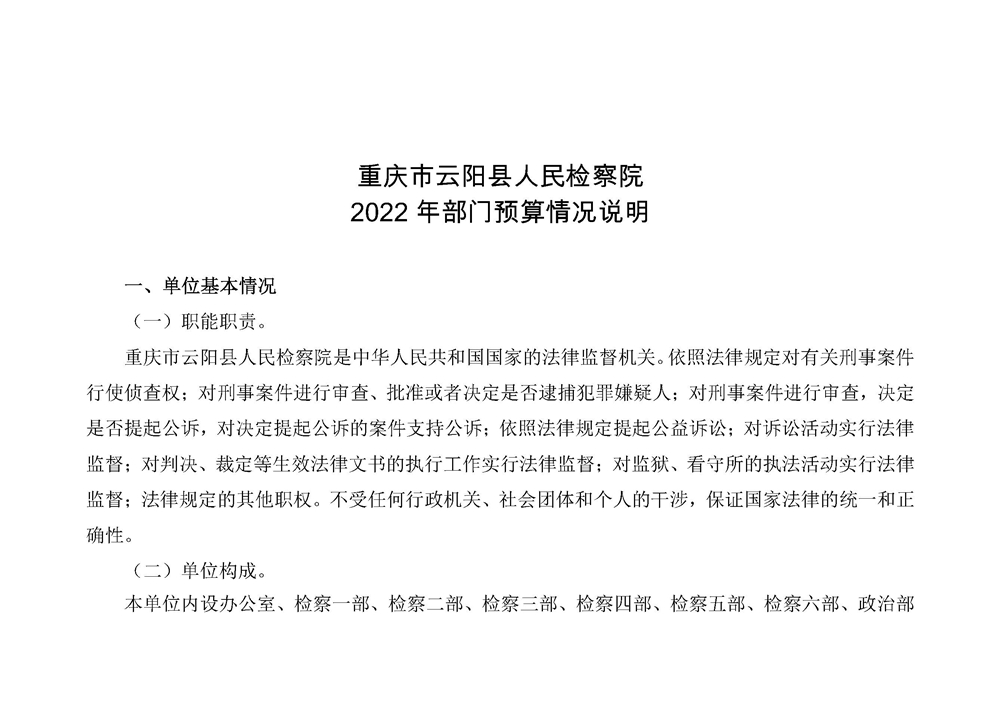 重庆市云阳县人民检察院2022年部门预算情况说明